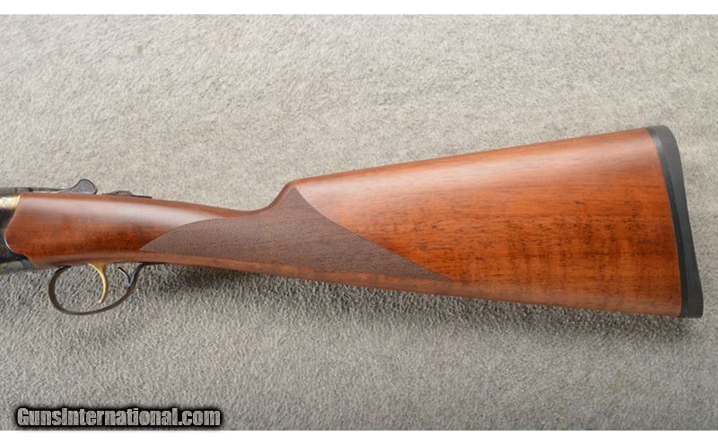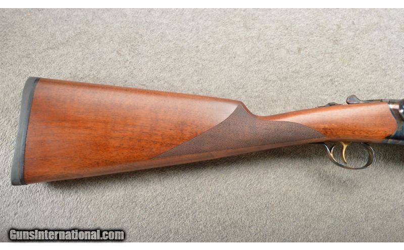 Description: This is a value prices shotgun with very nice features. This Tri-Star Bristol 12 gauge shotgun has 28 inch blue barrels with ejectors and screw in chokes (5) with a nice finish. The frame is a chemical case color that looks quite nice. The straight grip walnut stock and matching forearm would be a grade II-III or better. All in all a very nice shotgun for the money. 12 Gauge SOLD Chambers: 3 inch side X side with ejectors. Metal Condition: New in the box. Wood Condition: New in the box. Bore Condition: New in the box. Barrels: 28 inch blue. Triggers: Single gold color trigger. Stock Dimensions: 14 3/8 inch LOP. Fore End: Very nice grade II-III walnut with checkered splinter forearm. Butt Pad: Matching straight grip checkered butt stock with a black rubber butt pad. Weight: 6 lbs 10 oz. Sights: Single brass front bead. Chokes: "Screw in, comes with a full set of 5 chokes. Item Location: Owatonna, MN |