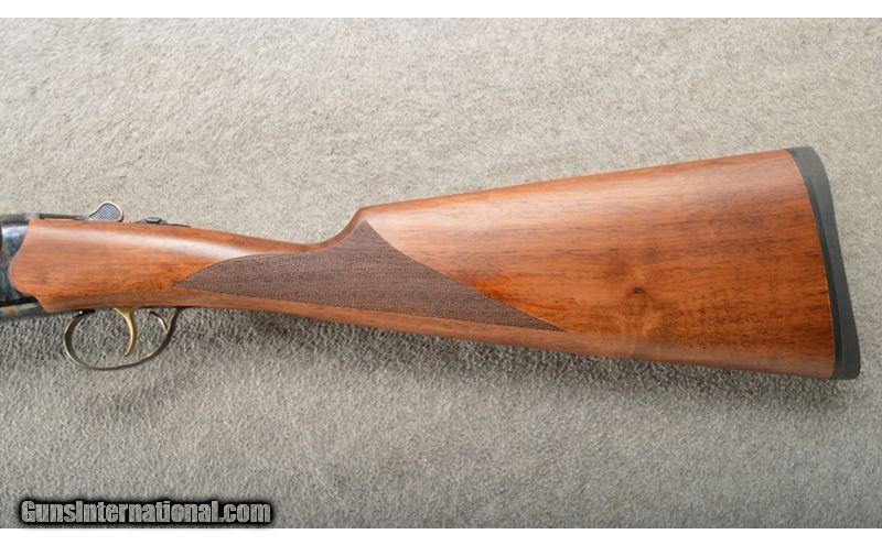 Description: This is a value prices shotgun with very nice features. This Tri-Star Bristol 12 gauge shotgun has 28 inch blue barrels with ejectors and screw in chokes (5) with a nice finish. The frame is a chemical case color that looks quite nice. The straight grip walnut stock and matching forearm would be a grade II-III or better. All in all a very nice shotgun for the money. 12 Gauge SOLD Chambers: 3 inch side X side with ejectors. Metal Condition: New in the box. Wood Condition: New in the box. Bore Condition: New in the box. Barrels: 28 inch blue. Triggers: Single gold color trigger. Stock Dimensions: 14 3/8 inch LOP. Fore End: Very nice grade II-III walnut with checkered splinter forearm. Butt Pad: Matching straight grip checkered butt stock with a black rubber butt pad. Weight: 6 Lbs 11 Oz. Sights: Single brass front bead. Chokes: "Screw in, comes with a full set of 5 chokes. Item Location: Owatonna, MN |