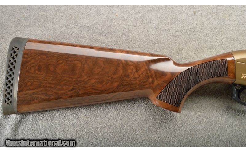 Description: This is a new in box Tri-Star Viper G2 Bronze Premium Select 12 gauge shotgun. The shotgun is a 3" gas operated, semi-automatic shotgun that allows you to shoot light target loads to heavy waterfowl loads interchangeably. Removable choke system uses Beretta/Benelli Mobile threads, includes three choke tubes (IC, M, F), choke box, and wrench. Cerakote receiver, high-grade Turkish walnut with cut checkering and gloss finish. Rubber Recoil pad, fiber optic sight and shim kits standard, backed by a five-year warranty. 12 Gauge SOLD Chambers: 3" Semi-auto 4+1. Metal Condition: New in the box. Wood Condition: New in the box. Bore Condition: New in the box. Barrels: 28" Blue chrome-lined chamber and barrel with a vent rib. Triggers: Single blue. Stock Dimensions: 14 ½" LOP. Fore End: High grade Turkish walnut with checkering. Butt Pad: Matching high grade Turkish walnut with a checkered pistol grip and a black rubber vented butt pad. Weight: 6 Lbs. 12 Oz. Sights: High Viz red front sight on the vent rib. Chokes: "Screw in, comes with 3 Beretta style choke tubes (IC, M, F). Item Location: Owatonna, MN |