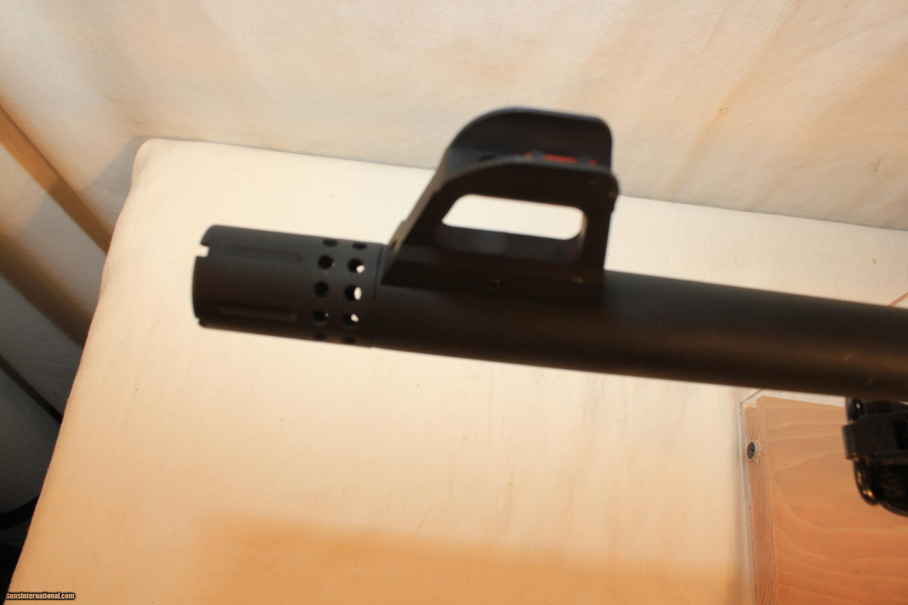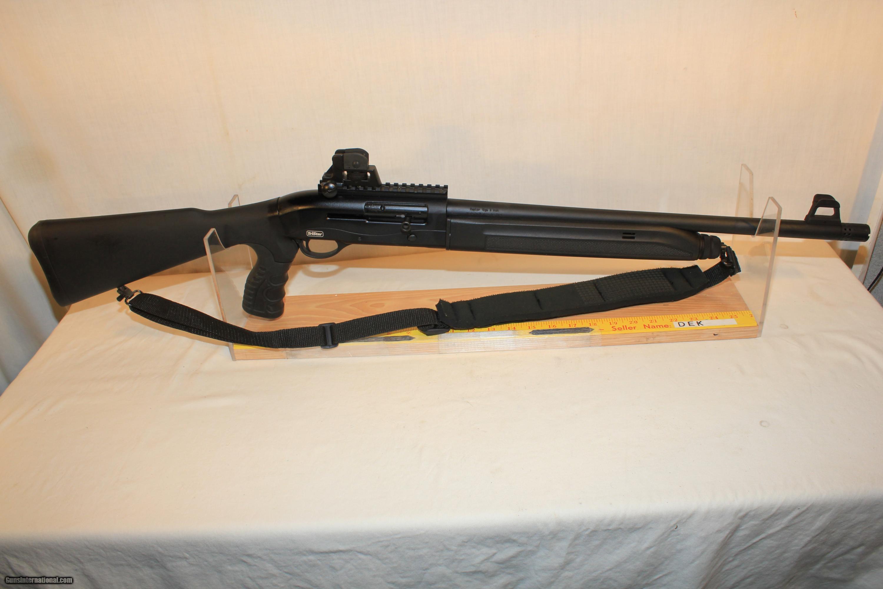 Description: TriStar semi automatic tacticle 12 gauge 3" shotgun with pistol grip stock. Peep sight has peep and ghost ring flip sights and Day Glow type front sight with military style guards. Door buster muzzel break and picatiny rale. Quick detatchable sling swivels. Really nice condition, shows very little use. FFL required $30.00 Shipping and insurance via insured Priority Mail SOLD |
