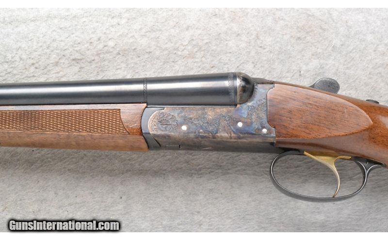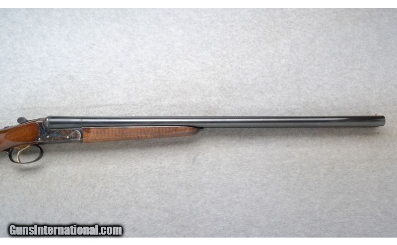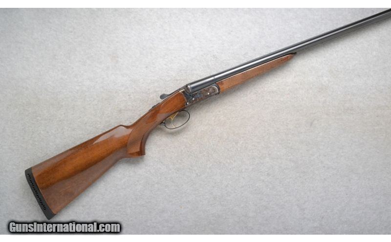 Description: This Tristar Model 411D is a side by side shotgun in 20 Ga. It has 24 inch barrels with ejectors and a solid rib. A brass bead front sight. With 3 inch chambers it comes with an IC and M choke tube. The butt stock is a checkered grip walnut pistol grip. The forearm is a checkered grip walnut. It has a single trigger. The case colored receiver is nicely engraved. Made in Italy. 20 Gauge SOLD Chambers: 3 inch. Metal Condition: Excellent with a few very minor use marks. Wood Condition: Very Good. Some light handling marks. Bore Condition: "Clean, bright and shiny. Barrels: 24 inch barrels with ejectors and a solid rib. Triggers: Single. Stock Dimensions: LOP 14 3/8 inches. Fore End: Checkered grip walnut splinter style. Butt Pad: Black rubber recoil pad. Weight: 6 lb. 12 oz. Sights: Brass front bead. Chokes: Comes with IC and M choke tubes. Item Location: Richfield, WI |