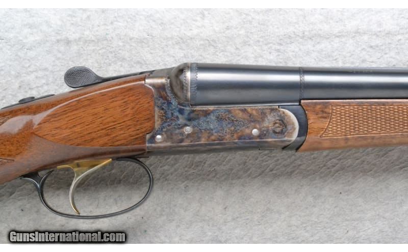 Description: This Tristar Model 411D is a side by side shotgun in 20 Ga. It has 24 inch barrels with ejectors and a solid rib. A brass bead front sight. With 3 inch chambers it comes with an IC and M choke tube. The butt stock is a checkered grip walnut pistol grip. The forearm is a checkered grip walnut. It has a single trigger. The case colored receiver is nicely engraved. Made in Italy. 20 Gauge SOLD Chambers: 3 inch. Metal Condition: Excellent with a few very minor use marks. Wood Condition: Very Good. Some light handling marks. Bore Condition: "Clean, bright and shiny. Barrels: 24 inch barrels with ejectors and a solid rib. Triggers: Single. Stock Dimensions: LOP 14 3/8 inches. Fore End: Checkered grip walnut splinter style. Butt Pad: Black rubber recoil pad. Weight: 6 lb. 12 oz. Sights: Brass front bead. Chokes: Comes with IC and M choke tubes. Item Location: Richfield, WI |