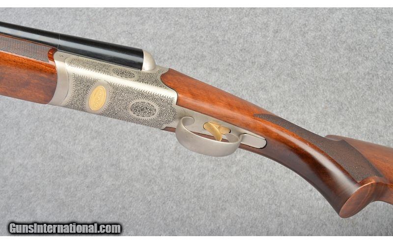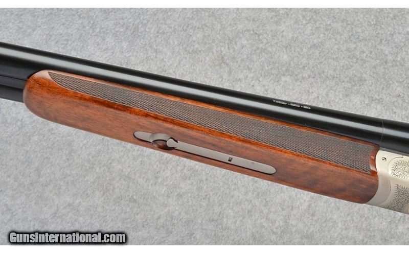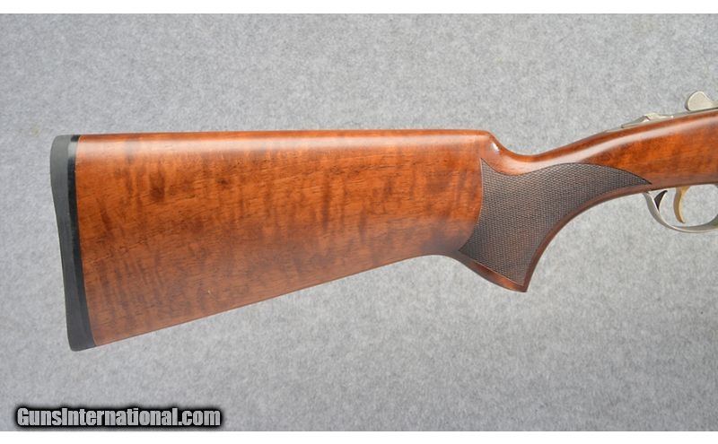 Description: Blued barrels with nickle finished, laser engraved receiver. Turkish walnut, square knob pistol grip stock. Tang select trigger, 5 choke tube set. Display shotgun shows a coupls minimal handling marks. New in factory box. 12 Gauge SOLD Chambers: 3 inch Metal Condition: NEW Wood Condition: "Square knob pistol grip, Turkish walnut Bore Condition: New Barrels: 28 Inch Triggers: Single Stock Dimensions: 14 5/8" LOP Fore End: Splinter Butt Pad: Rubber Recoil Pad Weight: 7 lbs Sights: "Matted Rib, Metal Bead Chokes: Choke Tube Set Item Location: Buda, TX |