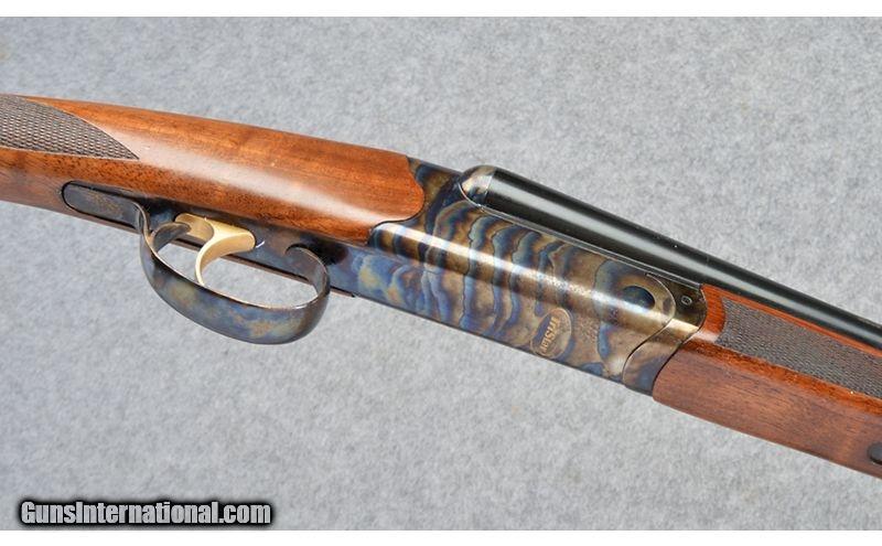Description: Couple display handling marks, areas of light oxidation on the receiver. New in Factory Carton .410 Bore SOLD Chambers: 3 Inch Metal Condition: Blued and Case colored Wood Condition: "Checkered, English Grip Bore Condition: New Barrels: 28 inch Triggers: Single Select Trigger Stock Dimensions: "14 1/4 Inch LOP, Cast-off for the right-handed shooter Fore End: Splinter Butt Pad: Rubber Recoil Pad Weight: 5 lbs. 4 Ozs. Sights: "Concave Rib, Metal Bead Chokes: Choke Tube Set Item Location: Buda, TX |