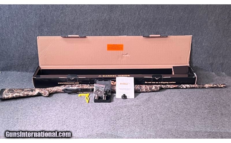 Description: This Factory New in the Box gas operated semi-automatic shotgun is a Tristar (Armsan) Viper G2 Realtree Max-5 chambered in 12 Gauge (2¾ and 3 inch shells). It has a front emerald green fiber optic sight, a Soft Touch finish synthetic diamond checkered fore arm, a thick black soft rubber ventilated butt pad, a ventilated rib with matted sight plane, a 30" barrel, a diamond checkered pistol grip synthetic stock, and a large mag well for easy loading. The Viper G2 gas operated, semi-automatic shotgun allows you to shoot light target loads to heavy pheasant loads. The highly durable synthetic stock is coated with Soft Touch finish for better handling in cold, wet weather, and a rubber recoil pad aids in rapid follow-up shots. A fiber-optic front sight allows for quick target acquisition in any light. The Viper G2 semi-automatic shotgun uses Beretta® Mobile choke threaded tubes (includes F, M, IC). A magazine cut-off allows you to unload and load the chamber directly, without cycling a new shell from the tubular magazine. A chrome-lined chamber and barrel aids in maintenance. The TriStar Viper G2 Synthetic is an ideal semi-auto shotgun for a wide range of hunting, from extreme-weather duck hunting, to spring turkey hunting, to shooting pheasants over corn stubble. It comes with a five-year mechanical warranty. 12 Gauge SOLD Chambers: 2¾ and 3 inch shells Metal Condition: Factory New In The Box Wood Condition: Factory New In The Box Bore Condition: Factory New In The Box Barrels: 30 inch barrel with ventilated rib with matted sight plane Triggers: "Smooth trigger, with rear-of-the-trigger-guard safety selector button Stock Dimensions: "14¼ inch LOP, overall length 50¼ inches Fore End: Soft Touch finish synthetic diamond checkered fore arm Butt Pad: Thick black soft rubber ventilated butt pad Weight: 7 lb 1 oz Sights: Emerald green fiber optic front sight Chokes: "Includes 3 choke tubes total (Full, Modified, and Improved Cylinder) Item Location: Wichita, KS |