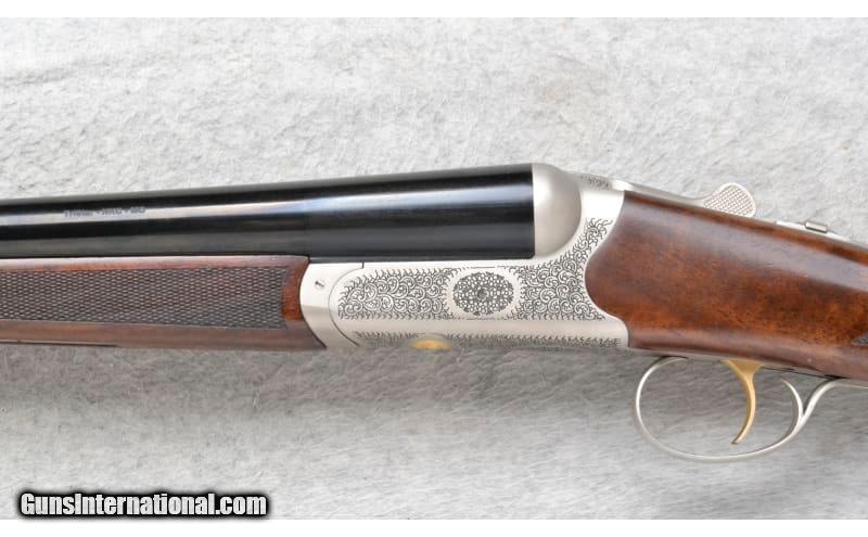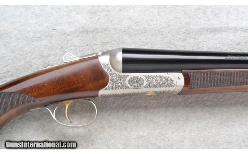 Description: This Tristar Model Bristol is a side by side shotgun in 12 Ga. It has 28 inch barrels with ejectors and a concave rib. A brass bead front sight. With 3 inch chambers it comes with 5 choke tubes. The butt stock is a checkered grip walnut pistol grip. The forearm is a checkered grip walnut. It has a SST. The receiver is nicely engraved. 12 Gauge SOLD Chambers: 3 inch. Metal Condition: Excellent. Wood Condition: Excellent. Bore Condition: Shiny. Barrels: 28 inch barrels with ejectors and a concave rib. Triggers: SST Stock Dimensions: 14.5 inches. Fore End: Checkered grip walnut. Butt Pad: Black rubber pad. Weight: 6 lb. 12 oz. Sights: Brass bead front. Chokes: Comes with 5 choke tubes. Item Location: Richfield, WI |