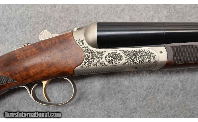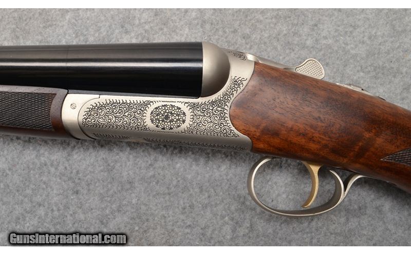 Description: TriStar Bristol in 12 gauge with 28" barrels and 3" chambers with ejectors. Barrel and receiver are in excellent condition. Intricate scroll work all about the receiver. Bores are bright and shiny with no dings, dents, rings, or bulges noted. Checkered pistol grip stock and checkered splinter fore end are also in excellent condition. Comes with factory box, choke tube wrench, owners manual, and five total chokes. 12 Gauge SOLD Chambers: 3" chambers. Metal Condition: "Barrels are in excellent condition with no dings, dents, or scratches noted. Receiver is also in excellent condition with intricate scroll work all around the receiver. Wood Condition: "Checkered pistol grip stock and checkered splinter fore end are in excellent condition. A couple of minor dings noted just behind trigger assembly, but nothing that goes through the finish. Barrels: 28" barrels. Triggers: Smooth gold trigger with barrel selector on tang. Stock Dimensions: "14 3/4"" LOP, 1 1/2"" DAC, 2"" DAH Fore End: Walnut checkered splinter fore end. Butt Pad: Factory rubber recoil pad. Weight: 6 lb - 12 oz Sights: Single metal bead. Chokes: Flush screw in chokes. Item Location: Mitchell, SD |