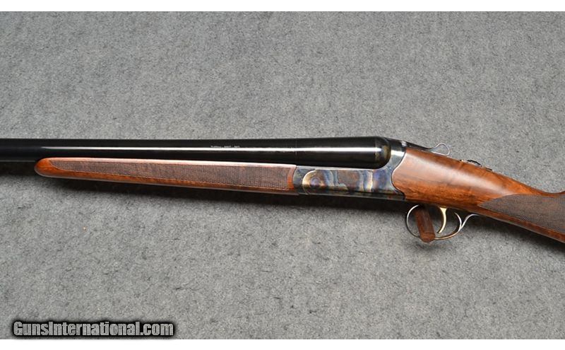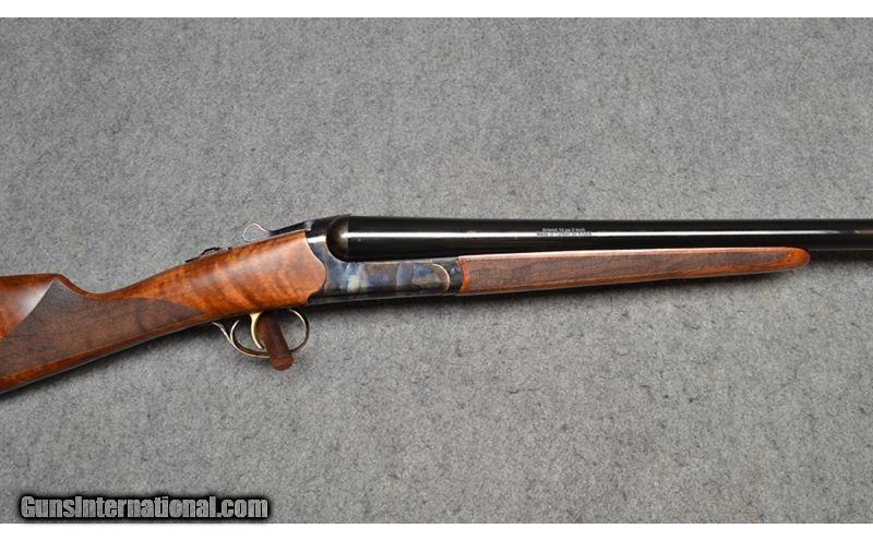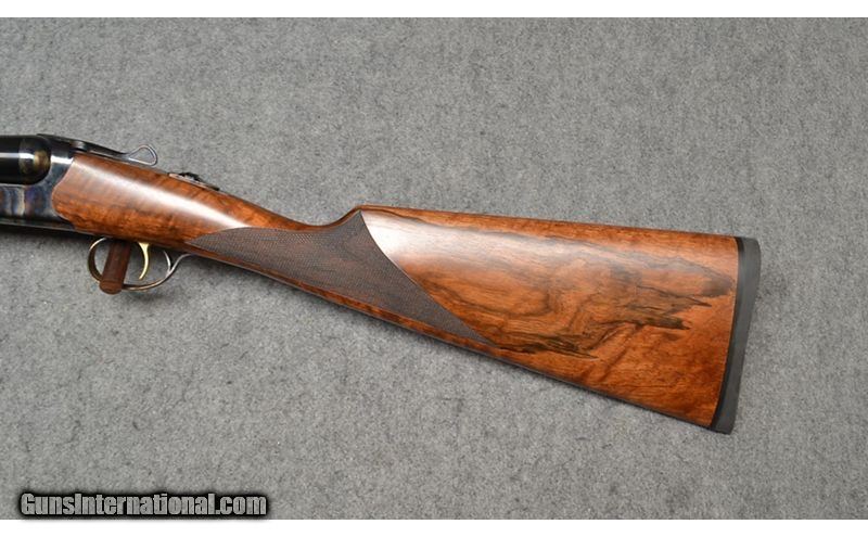 Description: This side by side shotgun is a Tristar Bristol chambered in 12 Gauge for 3 inch shells. It has an oil finished Turkish walnut straight stock, a case-hardened receiver, and a single selective trigger. This firearm is like new with some light display and handling marks. It comes with a box. 12 Gauge SOLD Chambers: 3 Metal Condition: Like new with some light display wear Wood Condition: Like new with some light display wear Bore Condition: Bright and shiny Barrels: 28" Gloss blue with ejectors Triggers: Gold plated with tang selector and safety Stock Dimensions: "14 3/4"" LOP, 1 1/2"" DAC, 1 3/4"" DAH Fore End: Checkered Turkish walnut with oil finish Butt Pad: 1/2" Rubber butt pad Weight: 7lbs Sights: Brass bead Chokes: Mobil choke system Item Location: Wichita, KS |