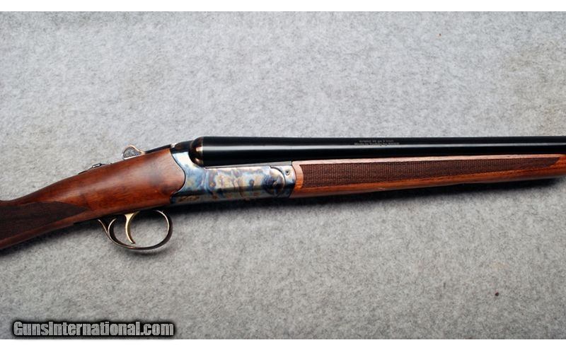 Description: Here we have a TriStar Bristol chambered in 20 gauge. This gun features 28" barrels and ejectors. 20 Gauge SOLD Chambers: 3 Wood Condition: "Good, some dings and dents from shop wear, most noticeably on the fore end and left side of the stock Bore Condition: Excellent Barrels: 28 Triggers: Single selective Stock Dimensions: "LOP: 14 3/8"", DAC: 1 7/16"", DAH: 2"" Fore End: Splinter Butt Pad: Factory rubber Weight: 6 lb - 2 oz Sights: Front bead Chokes: Interchangeable Item Location: Scarborough, ME |