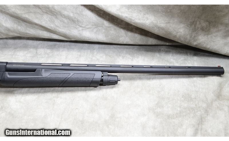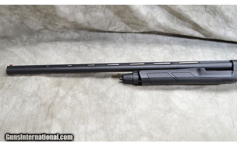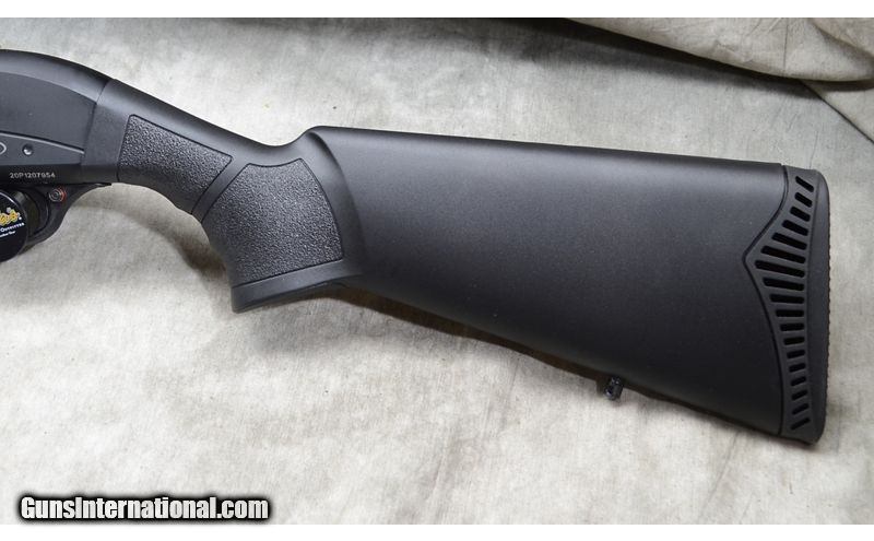 Description: A special buy of black synthetic pump guns. Accepts 2-3/4 and 3 inch shells. Everyday utility gun at an attractive price. 12 Gauge SOLD Chambers: 4 + 1 (unplugged) Metal Condition: As NIB. Wood Condition: As NIB. Bore Condition: As NIB. Barrels: 28 inch Triggers: Factory trigger. Stock Dimensions: 14-1/2 inch LOP Fore End: Black synthetic semi-beavertail Butt Pad: Soft rubber pad. Weight: 7 lb - 2 oz Sights: Fiberoptic bead with ventilated rib. Chokes: Interchangeable screw-in choke system Item Location: Rogers |
