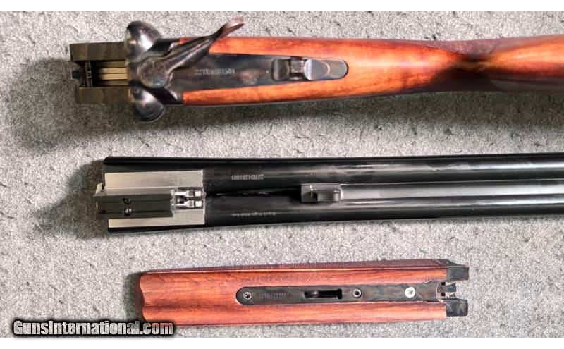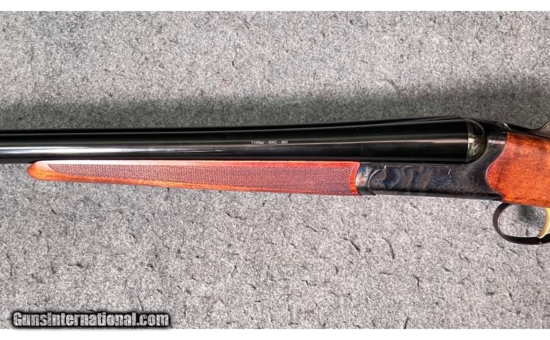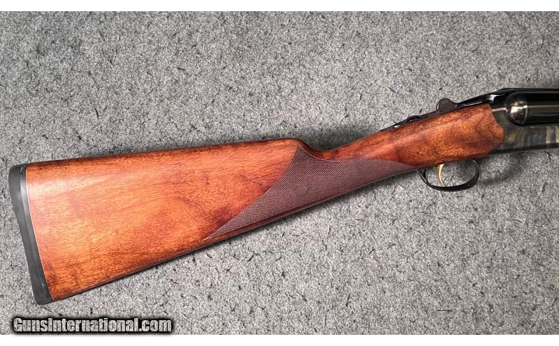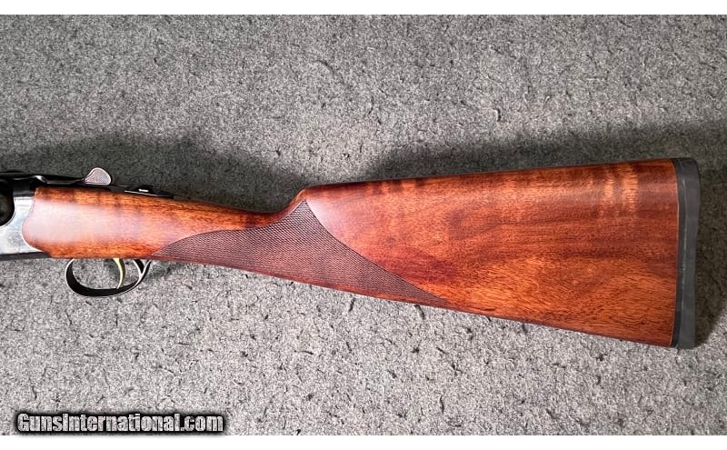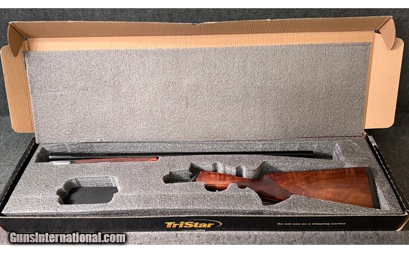 Description: This Factory New in the Box side-by-side break action shotgun is a Tristar (Khan) Bristol chambered in 12 Gauge (2¾ and 3 inch shells). It has a soft black rubber butt pad with black spacer, a single selective trigger, a diamond checkered Select Turkish walnut fore arm, a diamond checkered Select Turkish walnut pistol grip butt stock, and a case color hardened receiver. This shotgun is not a Blem. The Bristol line of Side by Sides delivers beauty, elegance, and performance and features an English Stock with Case Colored receiver. The Bristol comes standard with Select Turkish walnut, auto ejectors, 5 chokes Beretta Mobil (SK, IC, M, IM, F), brass bead front sight and a selective top tang safety. A Side by Side with competition grade craftsmanship at Field Grade pricing. Backed by TriStar's 5-Year Warranty. 12 Gauge SOLD Chambers: 2¾ and 3 inch shells Metal Condition: This shotgun is new in the box Wood Condition: This shotgun is new in the box Bore Condition: This shotgun is new in the box Barrels: 28 inch barrels Triggers: Single selective trigger Stock Dimensions: "14½ inch LOP, 45¼ inches overall length Fore End: Diamond checkered Turkish walnut fore arm Butt Pad: Soft black rubber butt pad with black spacer Weight: 6 LB 10 OZ Sights: Brass bead front sight Chokes: Five choke tubes total Item Location: Wichita, KS |