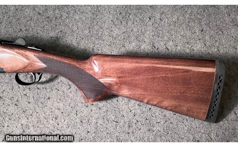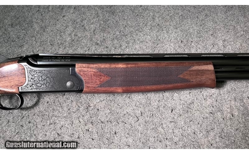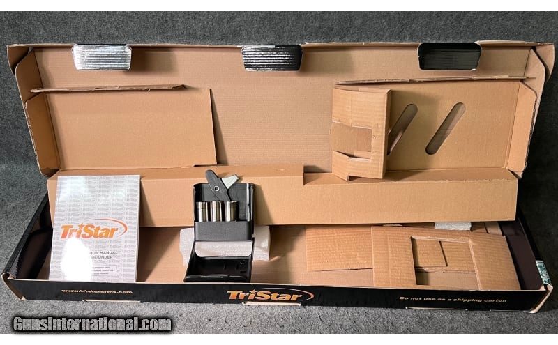 Description: This factory new in the box over/under shotgun is a Tristar (Kral Turkey) Upland Hunter chambered in 12 Gauge (2¾ and 3 inch). It has a front red fiber optic sight, a textured top full length ventilated rib barrel, a thick black rubber ventilated butt pad, a single selective trigger, a diamond checkered fore arm, a diamond checkered pistol grip stock, and a blued receiver. The Upland Hunter features a lightweight solid frame for durability and strength, sealed action to keep dirt out, self-adjusting locking lugs, top tang safety, steel mono block barrel construction, and select walnut with semi-gloss finish. It comes with the factory box, Owner's manual, five Mobil Style choke tubes (Full, Improved Modified, Modified, Improved Cylinder, and Cylinder) plus choke wrench. 12 Gauge SOLD Chambers: 2¾ and 3 inch shells Metal Condition: Factory new in the box Wood Condition: Factory new in the box Bore Condition: Factory new in the box Barrels: 28 inch Ventilated Rib barrels Triggers: Single selective trigger Stock Dimensions: "14¼ inch LOP, overall length 45¼ inches Fore End: Diamond checkered fore arm Butt Pad: Thick black rubber ventilated butt pad Weight: 6 LB 10 OZ Sights: Front red fiber optic sight Chokes: "Comes with five Mobil Style choke tubes (Full, Improved Modified, Modified, Improved Cylinder, and Cylinder) plus choke wrench Item Location: Wichita, KS |