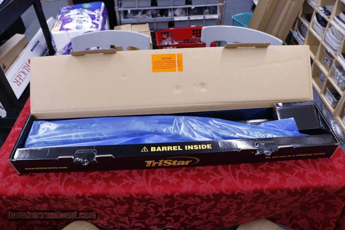 Description: Guns Listing ID: 309311 The TriStar Raptor is a series of affordable gas operated semi-automatic shotguns. The basic model features a synthetic stock and forearm chrome lined chamber and barrel vented rib with matted sight plane fiber optic sight quick shot plug removal swivel studs black or camouflage finish and Beretta-style IC M and F choke tubes. The Raptor is additionally available in the shorter Youth model as well as in the ATAC model which sports a pistol grip. Details Action Semi Auto - Gauge 20 - Chamber 3 - Capacity 51 - Finish Vista Camo - Stock Synthetic - Barrel Length 24 - Weight 6.7 lb SOLD Manufacturer: TRISTAR Model: RAPTOR YOUTH Condition: new Barrels: 24 BARREL Gauge Info: 20 GA |