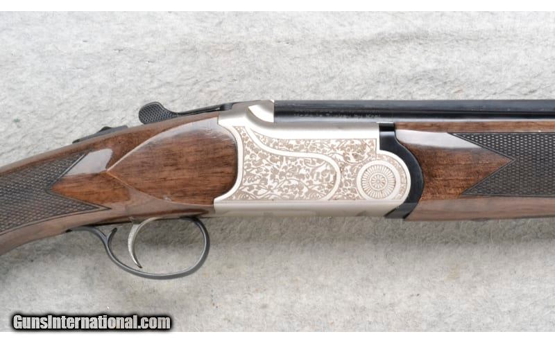 Description: This Tristar Model Setter is an over and under shotgun in 28 Ga. It has 28 inch barrels with an extractor. A red high visibility front sight. With 2 3/4 inch chambers it comes with a Mod. and IC choke tube in the gun. The butt stock is a checkered grip hardwood pistol grip. The forearm is a checkered grip hardwood. The receiver is very nicely engraved. A SST. 28 Gauge SOLD Chambers: 2 3/4 inch. Metal Condition: Good. Has light handling marks and freckling. Wood Condition: Good. Has some handling/use marks. Bore Condition: Shiny. Barrels: 28 inch ventilated rib barrels with extractor. Triggers: SST Stock Dimensions: LOP 14 1/4 inches. Fore End: Checkered grip hardwood. Butt Pad: Ribbed black rubber recoil pad. Weight: 6 lb. 14 oz. Sights: Red high visibility front. Chokes: Comes with Mod. and IC choke tubes in gun. Item Location: Richfield, WI |