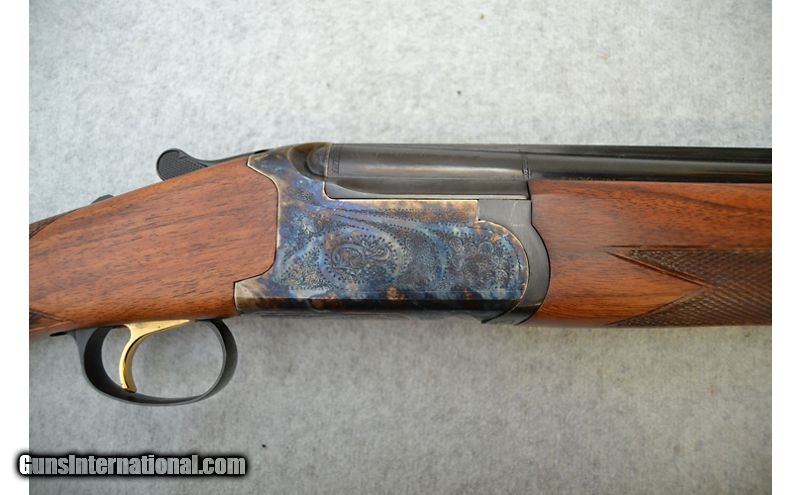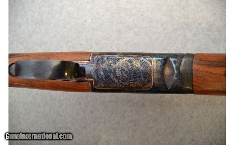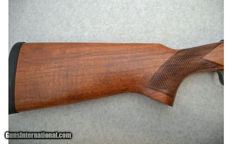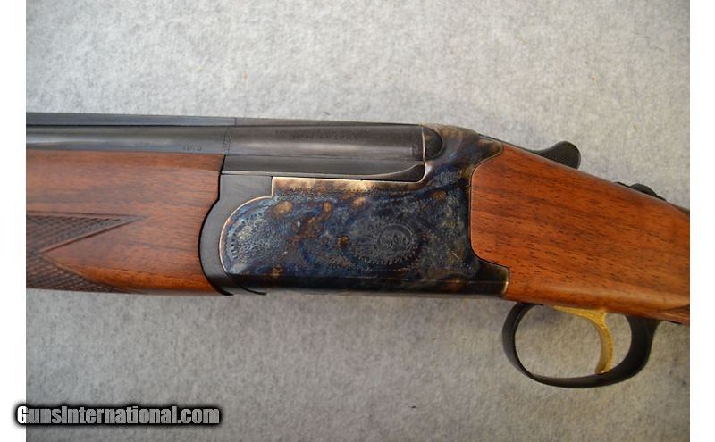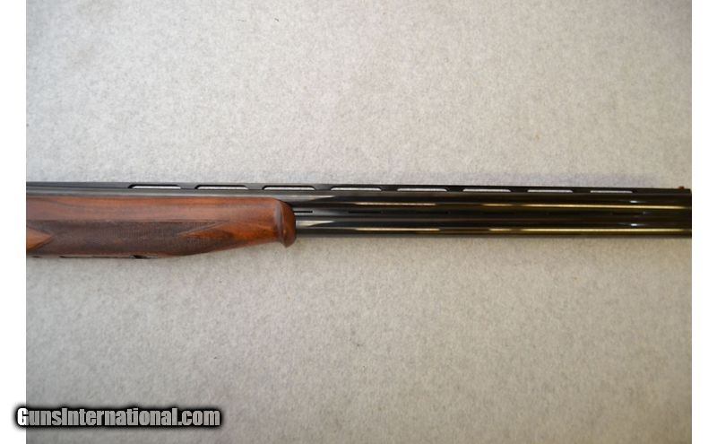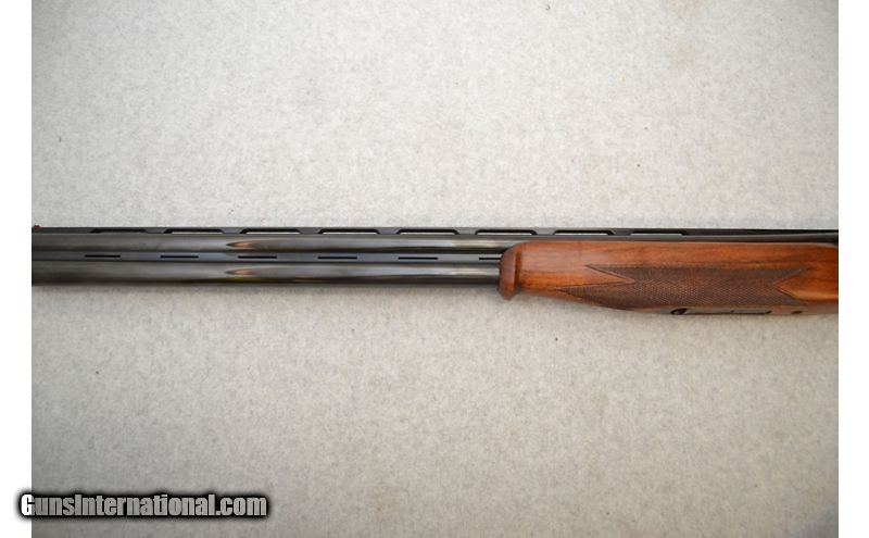 Description: Very good shape overall. Minor handling marks here and there on the metal. The furniture is in similar condition. 12 Gauge SOLD Chambers: Over/under chambering up to 3" shells. Metal Condition: Very good. Wood Condition: Very good. Bore Condition: Excellent with bright shine and no deformities. Barrels: 28" Gloss blued with ventilated rib. Triggers: Wide "gold" colored with smooth surface. Stock Dimensions: Diamond pattern checkered hardwood with a 14½" LOP. Fore End: Hardwood with wrap around diamond pattern checkering. Butt Pad: Black rubber pad. Weight: 7lbs 8oz Sights: Orange front bead. Chokes: Comes with modified and full choke tubes. Item Location: Green Bay |