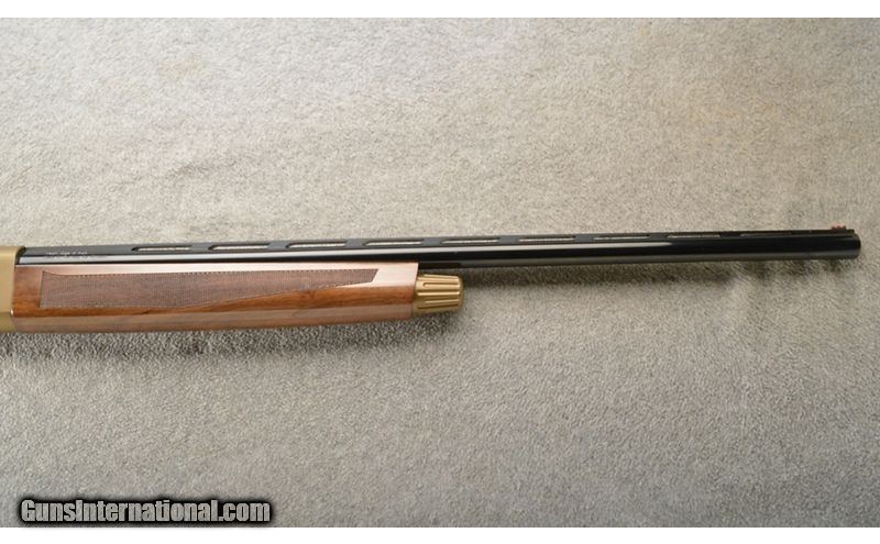Description: General Description: 3" gas operated, semi-automatic shotgun that allows you to shoot light target loads to heavy waterfowl loads. Removable choke system that uses Beretta Mobile threads includes three choke tubes (IC, M, F), choke box and choke wrench. Turkish Walnut stock and forearm with cut checkering and semi-gloss finish. Rubber recoil pad, backed with a five-year mechanical warranty. Features: • Manual E-Z Load Magazine Cut-Off • Vent Rib w/ Matted Sight Plane • Fiber Optic Sight • 5 Round Magazine — Shot Plug Included • Quick Shot Plug Removal • Chrome-lined Chamber and Barrel • 3 Beretta® Style Choke Tubes (IC, M, F) Action: Gas operated semi-automatic. Bolt remains open after last round is fired. If magazine and chamber are both loaded, opening action will result in ejecting shell from chamber and cycling new shell from magazine into the chamber. If operator desires to unload the chamber only, slightly push lifter up and open action. This cuts the magazine off from cycling a new shell while unloading the chamber. Chamber will remain closed though. Safety: The primary safety is located on the backside of the trigger guard. When engaged, the safety is designed to block the trigger, hammer lever and the hammer which makes the firing mechanism immobile. Magazine: Tubular magazine; bottom loading. Shot plug is included and comes installed. Shot plug is easily removable by unscrewing the magazine cap. Simply pull plug out and replace magazine cap. 12 Gauge SOLD Metal Condition: Near New. Wood Condition: Near New. Bore Condition: Near New. Triggers: Single. Stock Dimensions: LOP 14.5". Weight: 6.9 lbs Item Location: Owatonna, MN |