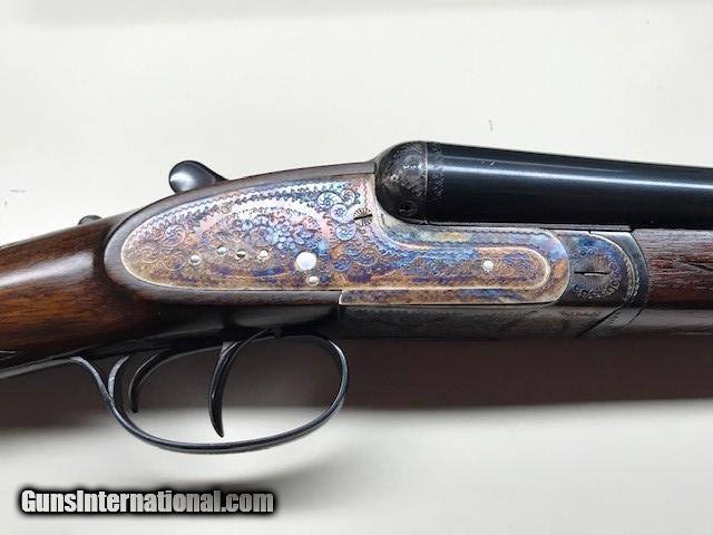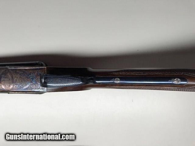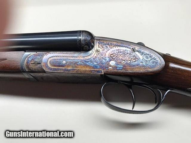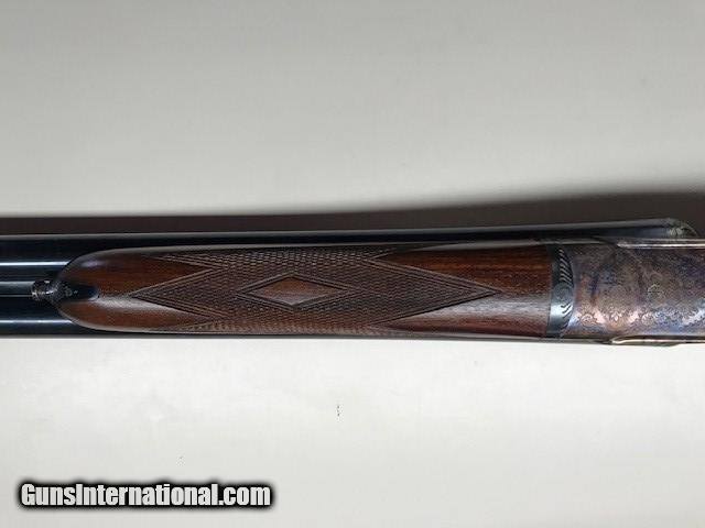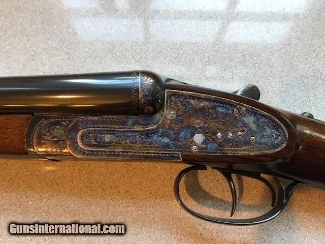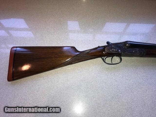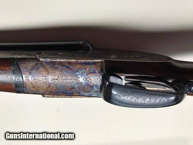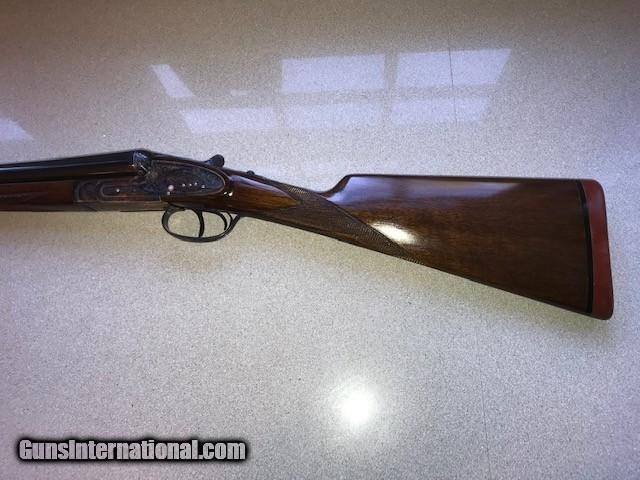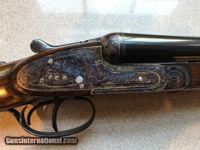Description: A very nice 12ga.Sidelock, outstanding condition, little used, ejectors, gas port, bushed firing pins, articulating front trigger, 27 inch barrels, Silvers recoil pad, Imported by W. L. Moore Co, Westlake, Ca., 1988, priced to sell quickly. SOLD Serial Number: 185593 Chambers: 2 3/4 Ejectors: YES Condition: EXCELLENT Metal Condition: CASE COLOR AS NEW Wood Condition: Excellent - Satin finish Bore Condition: Excellent Barrels: 27" Action: SIDELOCK Triggers: DOUBLE Gauge Info: 12 ga Stock Heel: 2 1/2 Stock Cast: 1/4" OFF Butt Pad: Silvers LOP: 14 3/4" front trigger Weight: 7lb 3oz Manufacture Date: 1988 Chokes: Fixed Choke Left: .018 Mod Choke Right: .010 IC Engraving: FINE Proof:Nitro: YES |