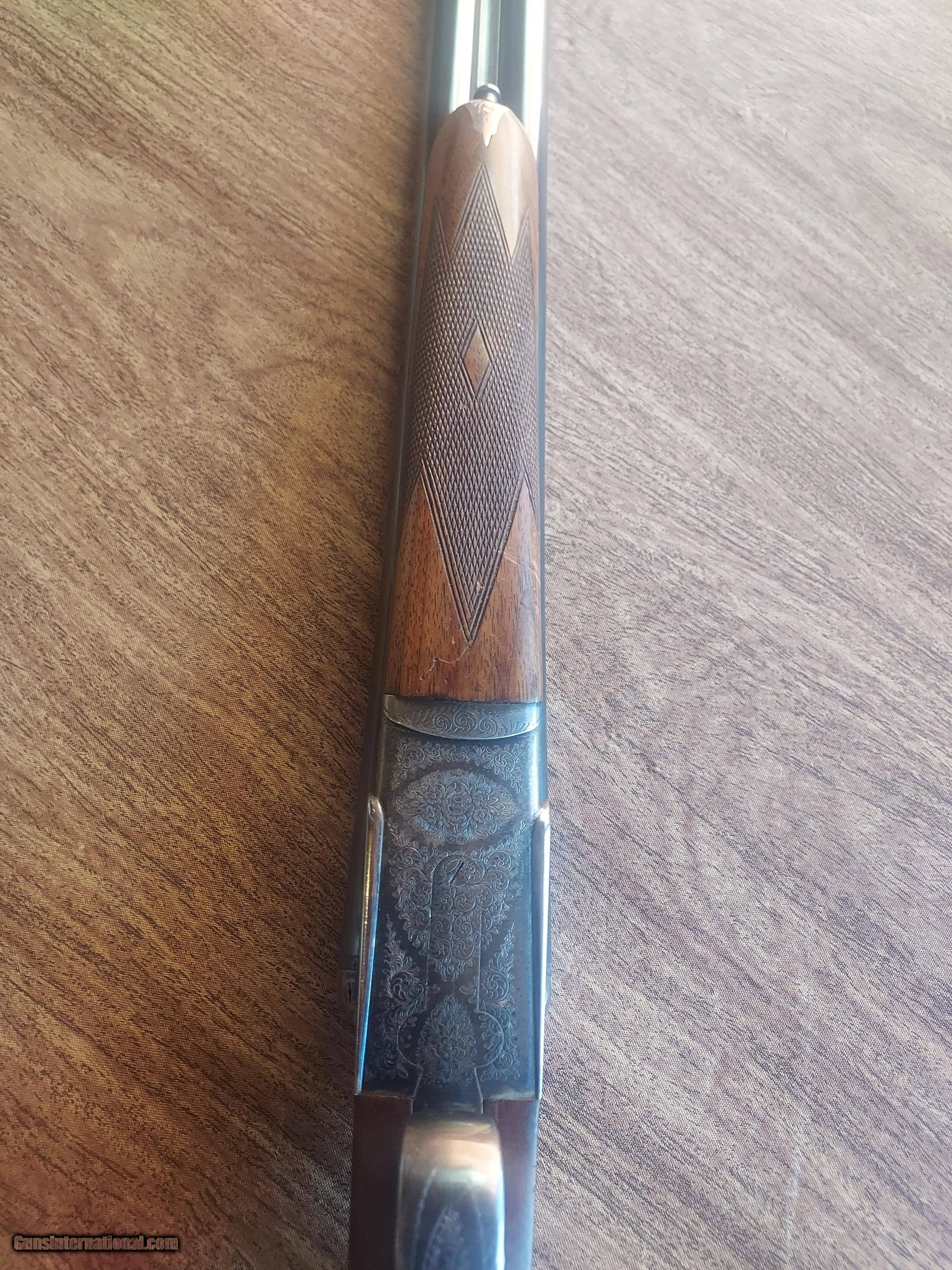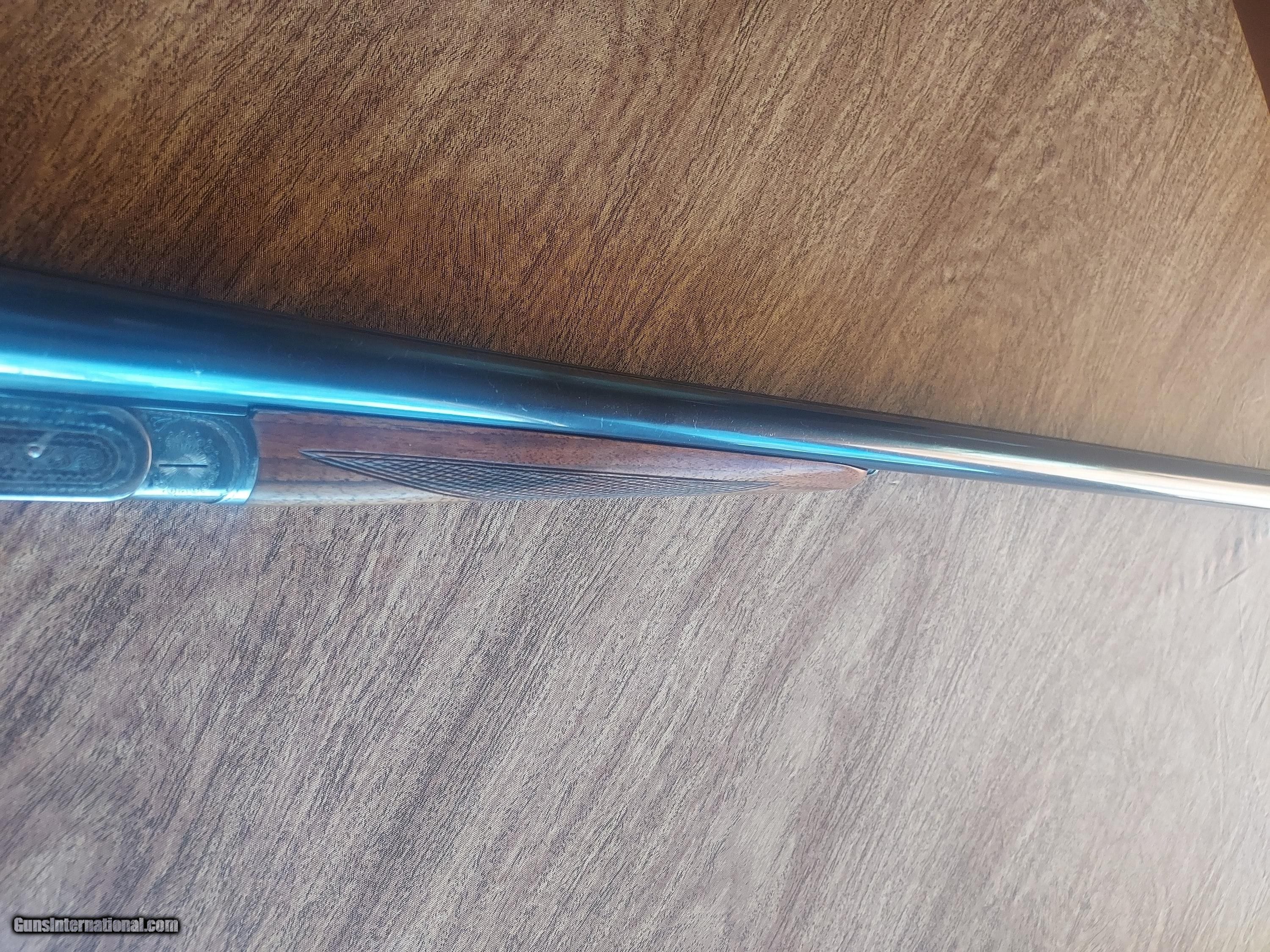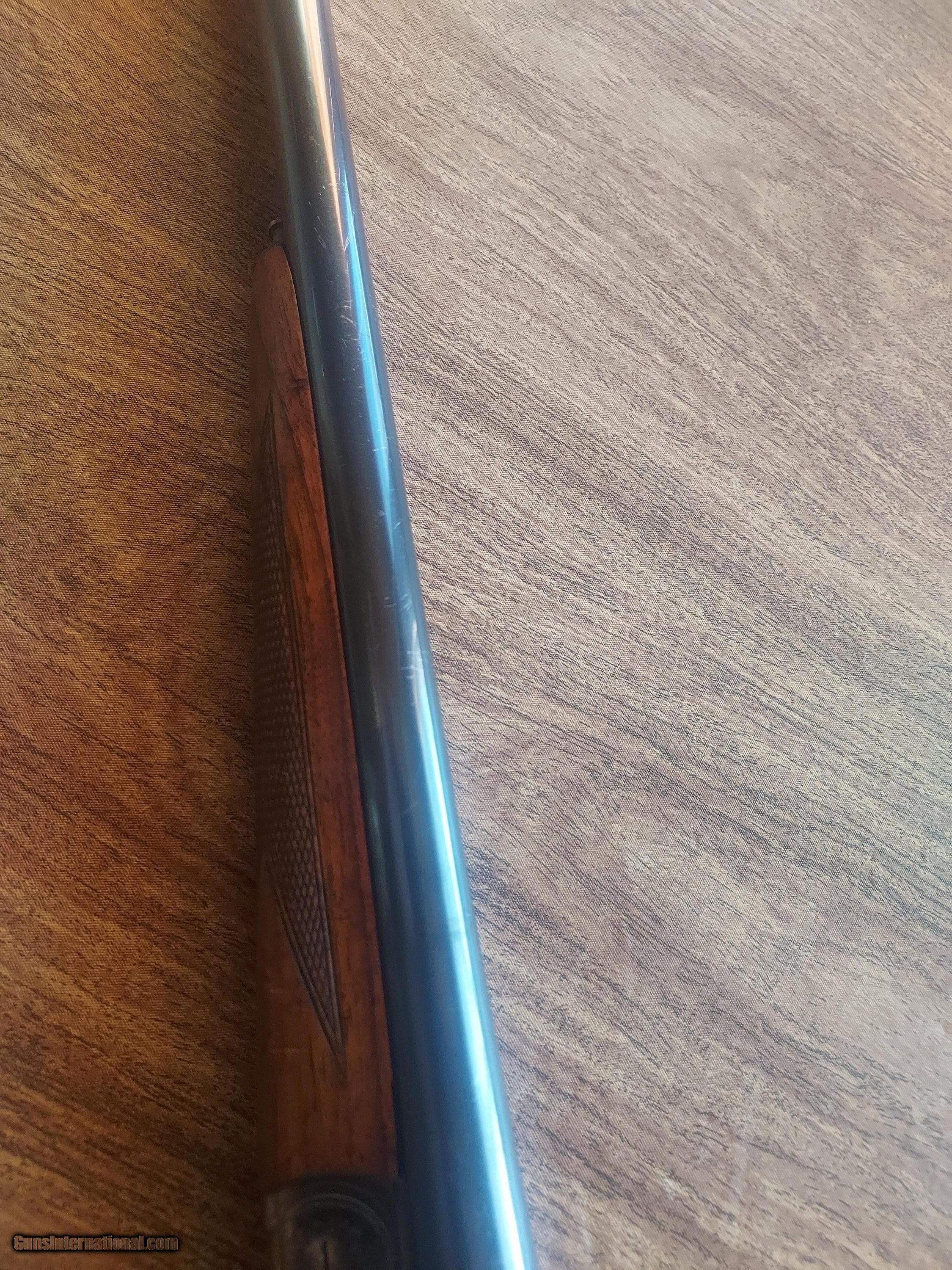 Description: This upland classic has been used with some marks to the wood and metal. The case color is strong, as is the bluing. There are two small dents in the left barrel, as shown and as evident by the price. 13 1/2" to the back trigger and 14 3/8" to the front trigger to the checkered butt. Strong lock up and will make a great field gun. Price: $1,675.00 Contact Seller |