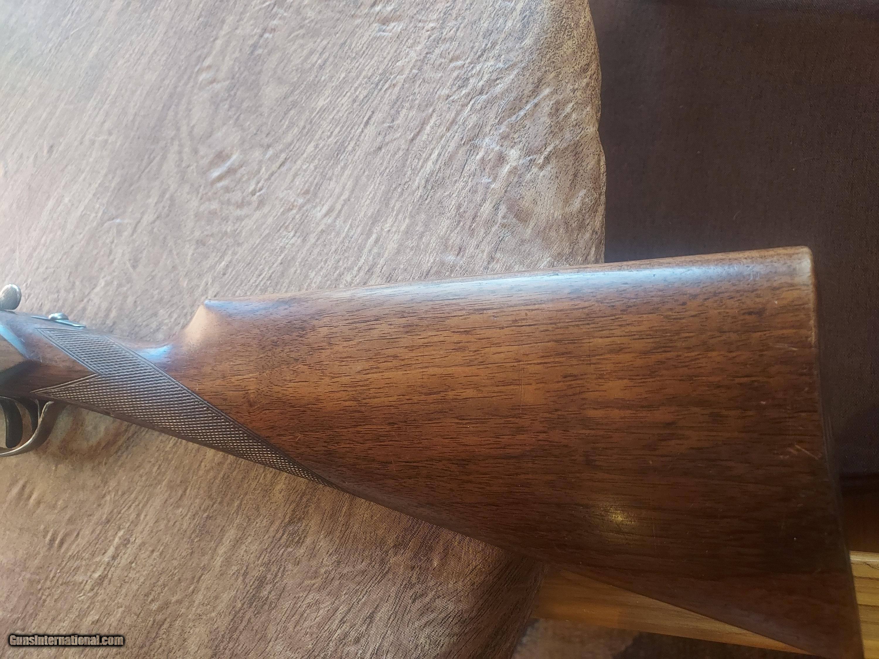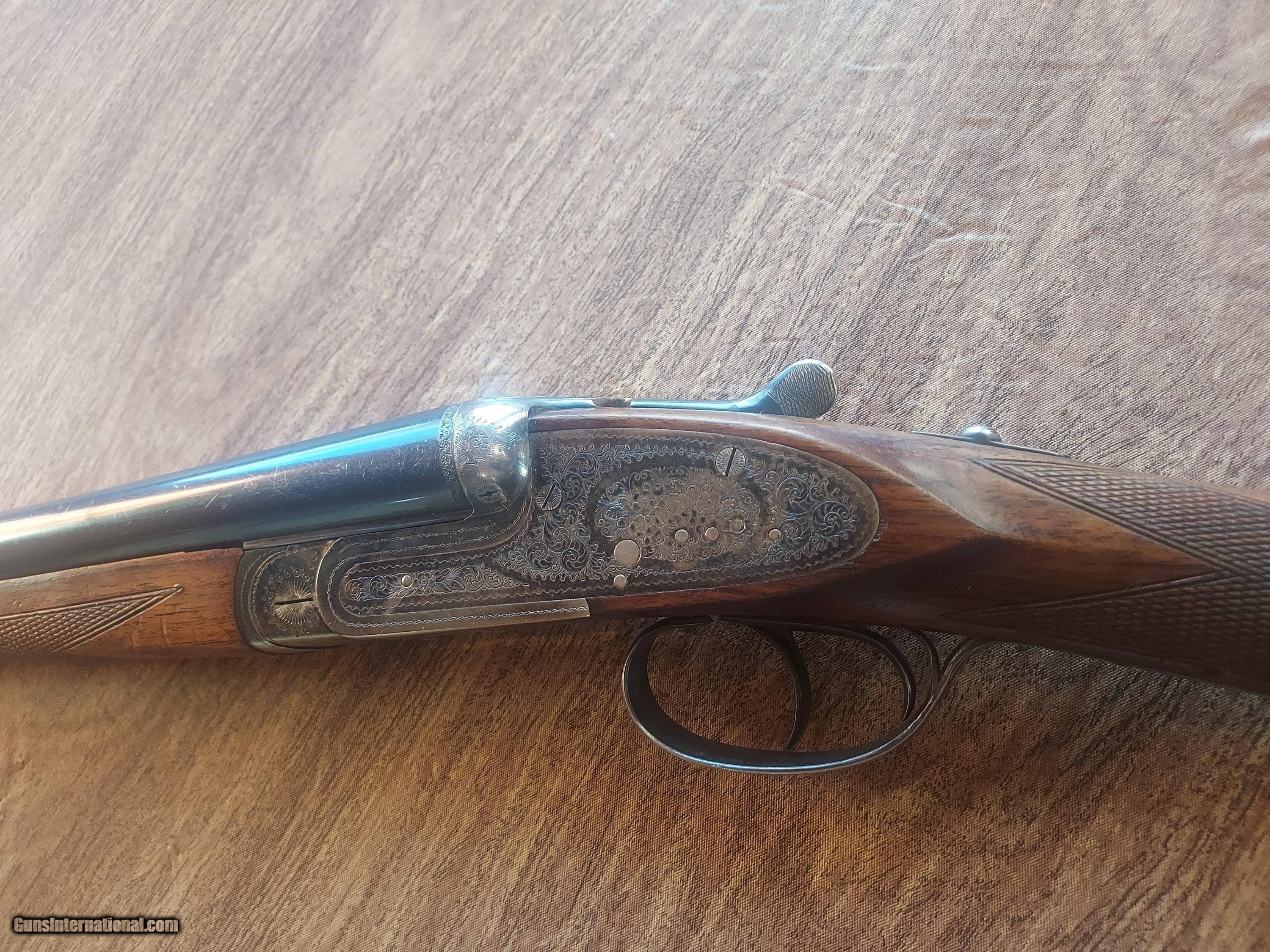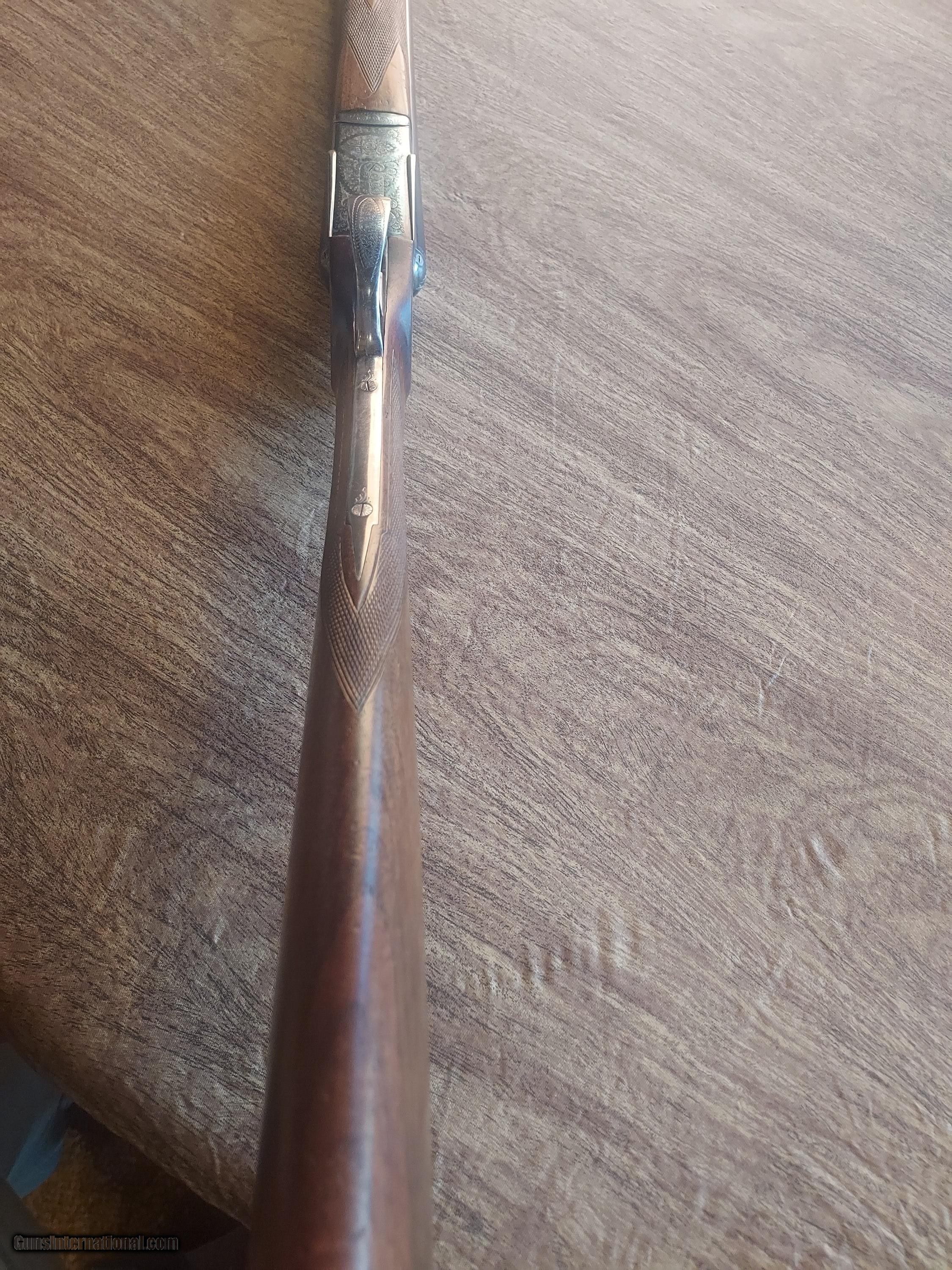Description: This upland classic has been used with some marks to the wood and metal. The case color is strong, as is the bluing. There are two small dents in the left barrel, as shown and as evident by the price. 13 1/2" to the back trigger and 14 3/8" to the front trigger to the checkered butt. Strong lock up and will make a great field gun. Price: $1,675.00 Contact Seller |