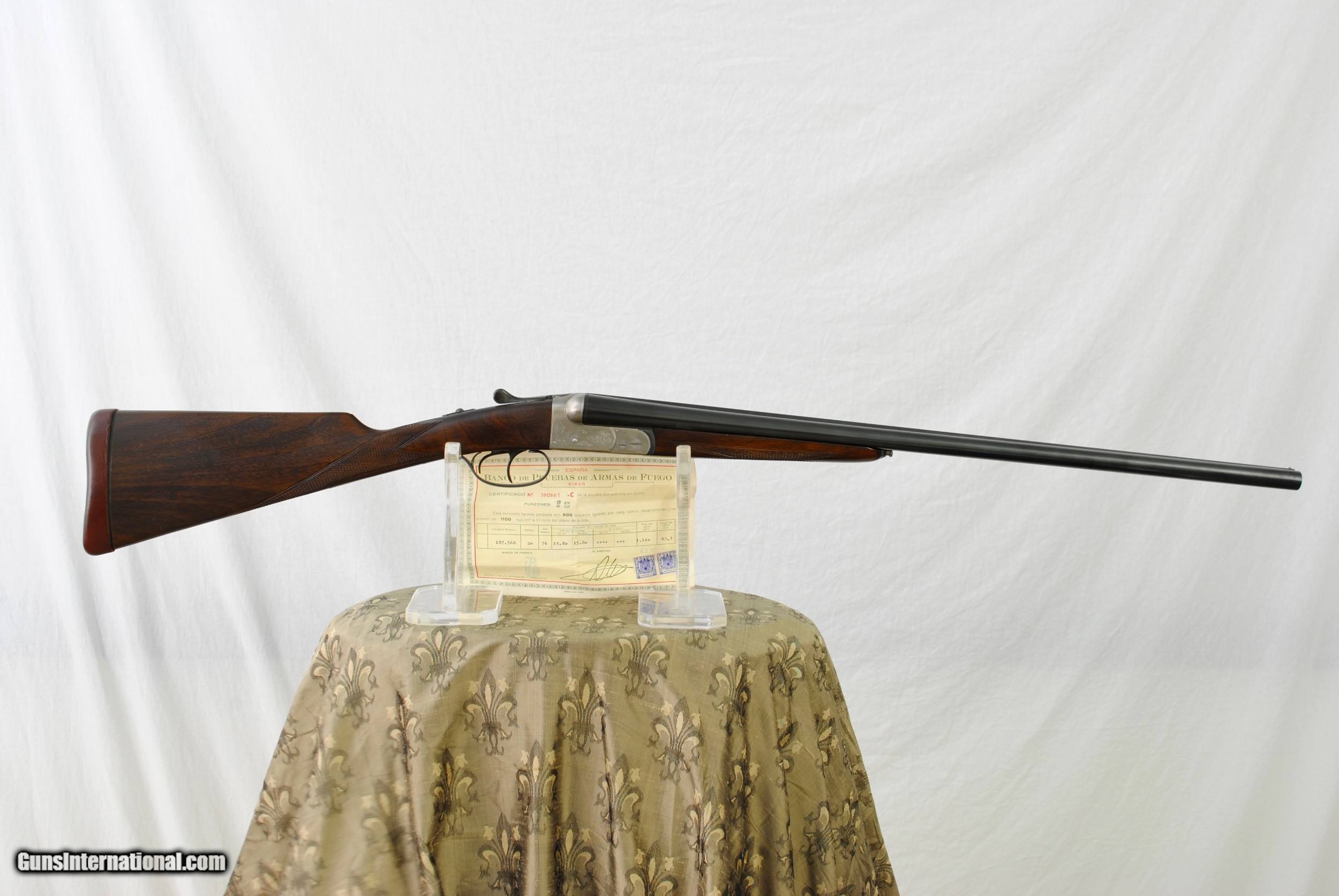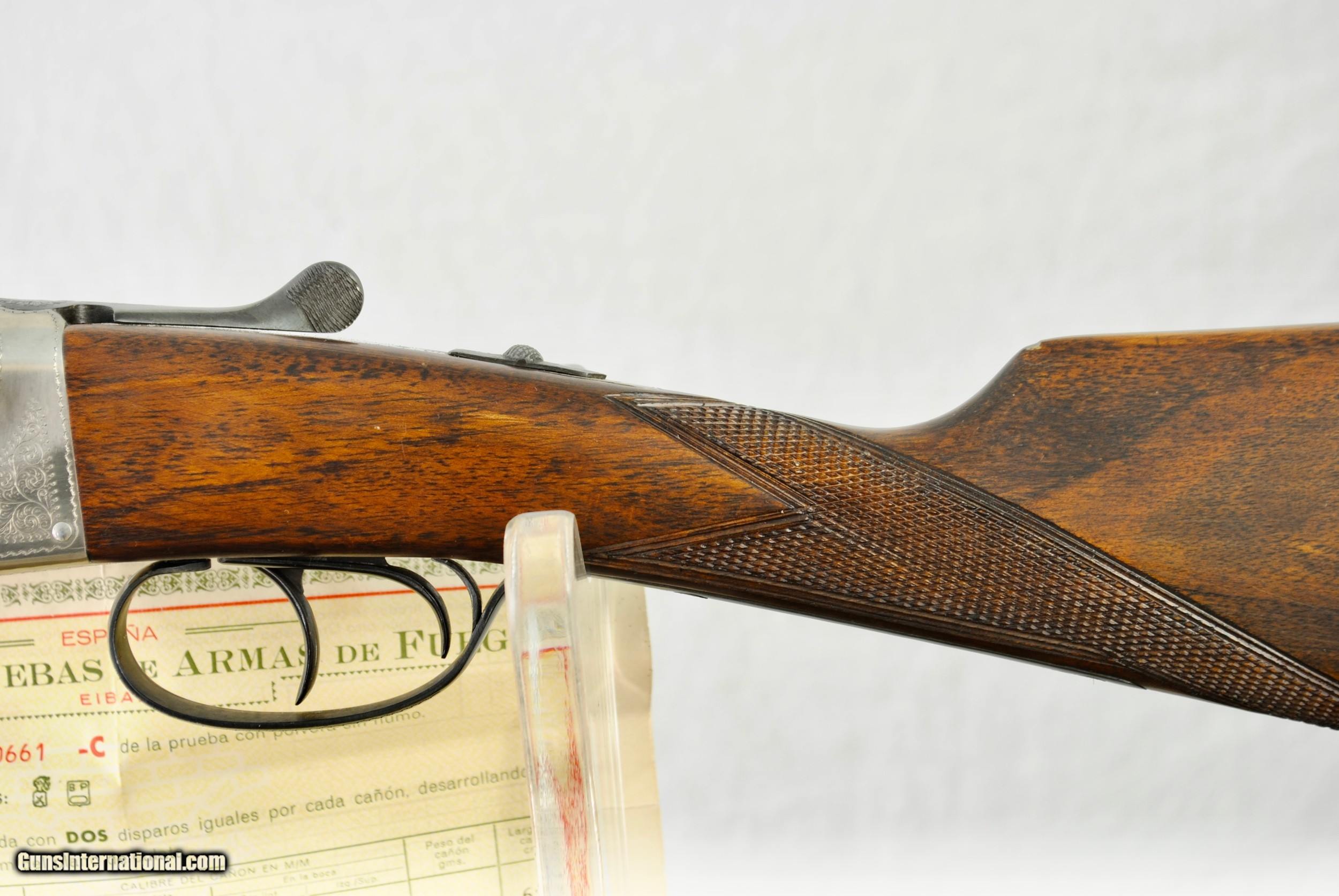 Description: Ugartechea 20 gauge Anson & Deeley Boxlock 20 gauge in as new conditon. This gun remains a time capsule from 1958. No box or paperwork. Ejectors. Churchill rib. Leather covered recoil pad. Disc set firing pins. Barrels are 25". Chambers are 2 3/4". Chokes are IC and Mod. Auto safety. Weight of gun is 5 LBS 12 5/8 OZ. Includes proof certificate from Spain. LOP is 14 1/8". Drop at comb - 1 1/2". Drop at heel - 2 1/4". Shipping is $50. SOLD Shotgun Gauge: 20 Gauge |
