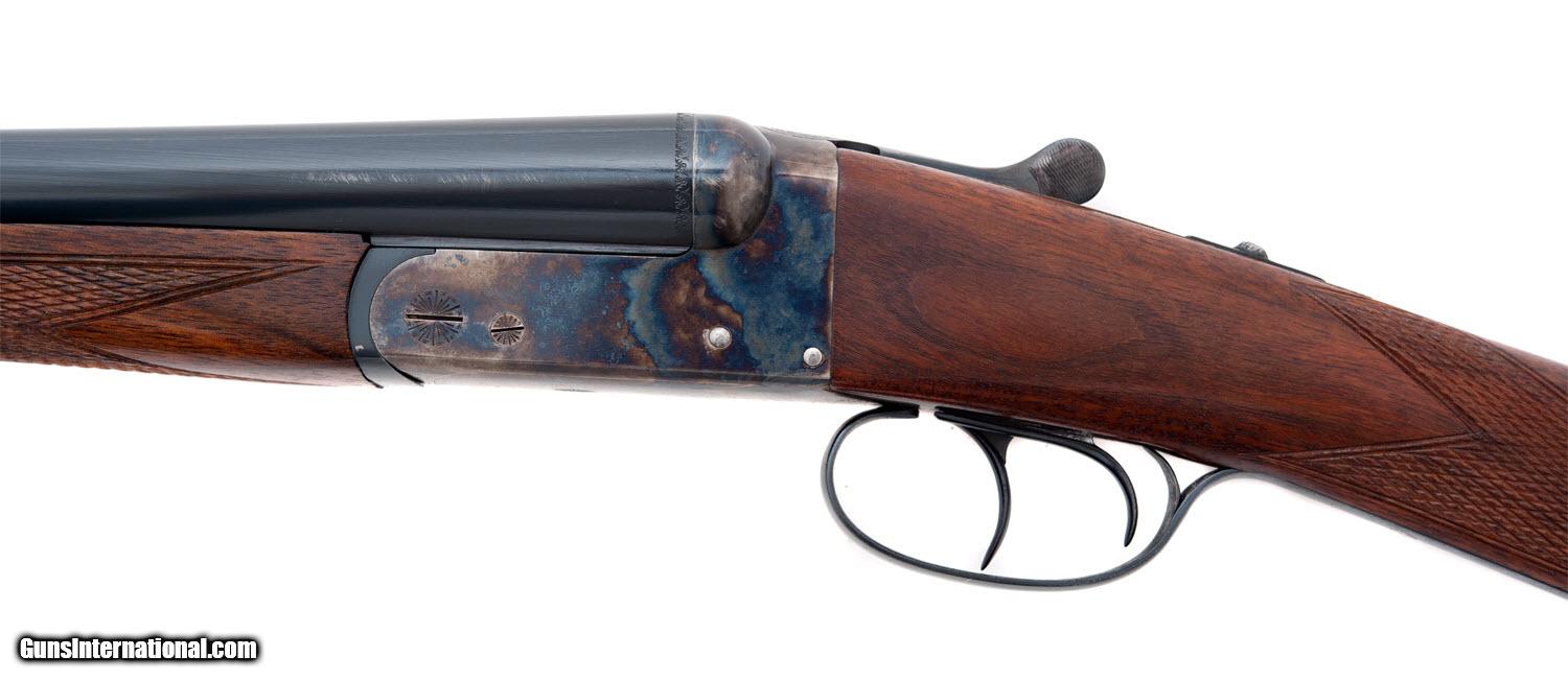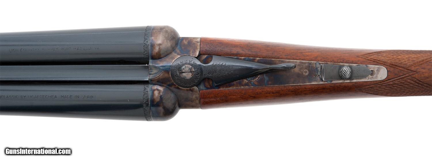 Description: Ugartechea - 30 - 16 ga - Item Number: UGA350312910 Shotgun type: SxS Action: Boxlock Ejectors: No Trigger: Double Grip: Straight Grip Forend: Checkered Lop: 14 5/8 " Pad thickness: " Type of butt: Checkered Wood Drop comb: 1 7/16 " Drop heel: 2 3/8 " Cast amount: 3/16 " Cast: Off Weight: 6 lbs, 8 oz Manufactured in: Spain Manufacture Year: Finish: Case Colored Overall condition: Very Good Stock condition: Very Good Metal condition: Very Good Stock: Original finish Metal: Original finish Type of Case: Factory Box Extra barrels: 0 Barrel info: Gauge: 16 ga Chamber: 2 3/4 " Length: 28 " Chokes: IC/M Rib type: Concave Comments : Gun is in very good condition, shows some wear in the blue on the left barrel. SG-29 F3 SOLD |