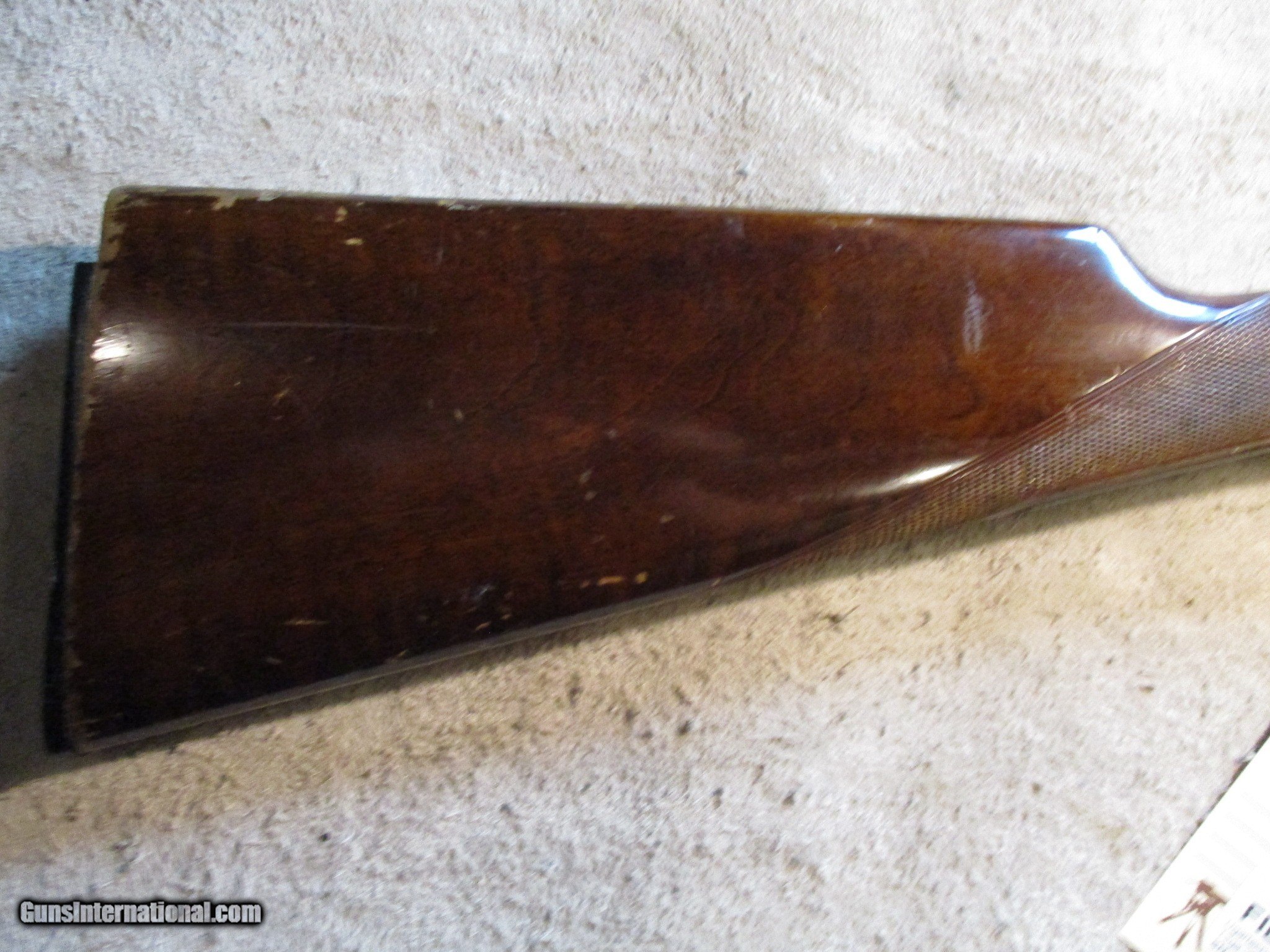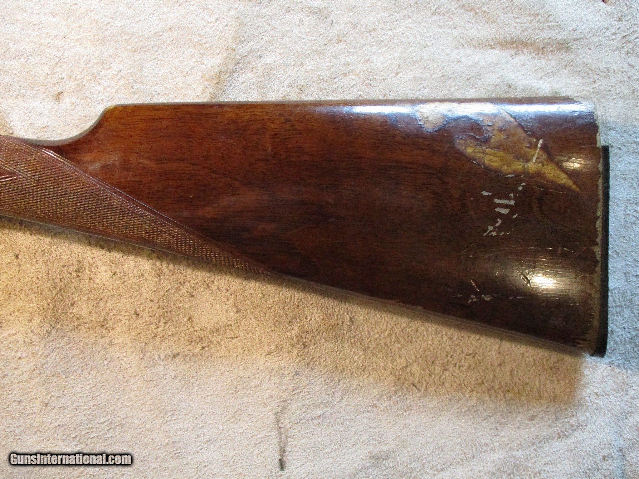 Description: Ugartechea Boxlock side by side, 12ga, 2.75" chambers, fixed IMP MOD and FULL chokes. Double triggers, extractors. SN is 1068xx. Factory finisih on both wood and metal, factory butt plate (cracked). LOP is 14 1/4". Action is nice and tight, not been shot much at all. Or cut the barrels off and make a cowboy gun! We will trade for silver and gold. We accept personal check, any certified funds, -Venmo or -Zelle. We can also take your credit card, +3%. Email me if you would like these pictures sent to you, they will come through bigger and better than on the listing page here. We do offer Layaway. Our standard terms are 25% down, 90 days. Initial deposit is not refundable. Email me with any questions. Please check your local laws to confirm it is legal to own in your state! Buyer pays $60 shipping and insurance in a brand new PLANO hard case to your FFL in the lower 48. AK, HI or PR is extra. I will ship to California, as long as it is legal, NO PROBLEM! All my guns come with a non-firing, 3 day unconditional return privilege, from the day UPS delivers to your dealer. Buyer pays shipping both ways if the gun comes back. Please make sure to make it to your FFL to inspect within the 3 days. I am a licensed FFL, and will include a copy of my FFL with the gun for your dealer’s records. I will ship to a C&R if the gun is eligible. I will ship to California, but you need to confirm the gun is legal where you are, California or other. WE BUY AND CONSIGN GUNS AND GUN COLLECTIONS! We will travel to pick up collections! I am always looking for good clean, old original Winchesters to buy, consign, or trade, especially Pre '64's model 70's and model 54's. WE ALSO TRADE FOR CLASSIC CARS AND TRUCKS! We also trade for gold and silver. SOLD Shotgun Gauge: 12 Gauge Manufacturer: Ugartechea Model: Master Barrel Length: 28 Condition: Used |