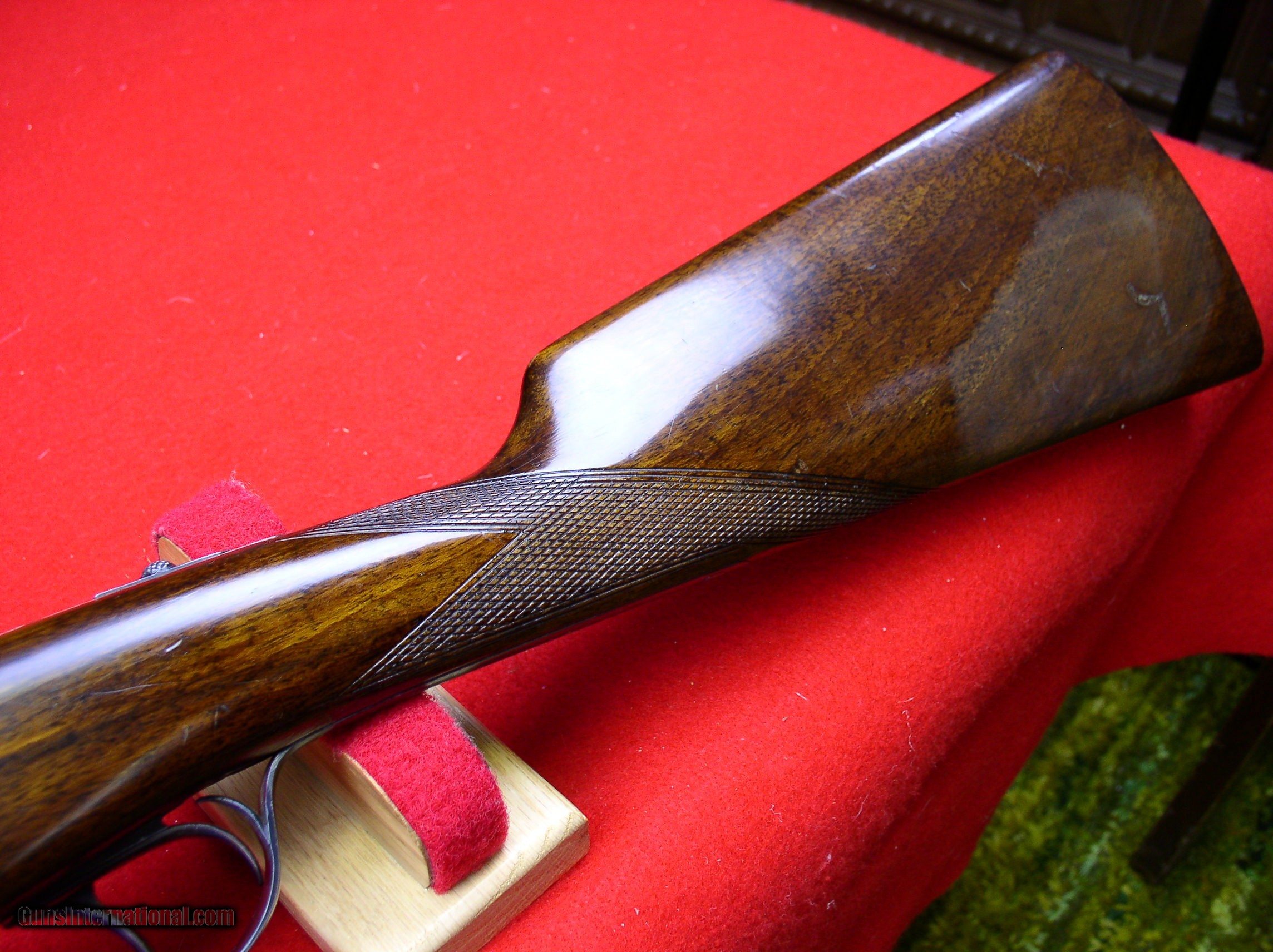 Description: UGARTECHEA MODEL 30 12 GA WITH 28" BARRElS IMPORTED BY PRECISION SPORTS, CORTLAND, NY. 28" Barrels, 2 3/4" Chambers with Extractors: Right Bore .724" with .008" Choke (IC) Left Bore .724" with .014" Choke (Lite Mod) LOP 14 5/8" to a Checkered Butt DAC 1 1/2" DAH 2 1/2" Weight 6lbs 11oz CONDITION: Blue 85% Case Color 50% Wood and Finish 75% with some handling marks No cracks, dents, bulges. Bores are free of rust, corrosion and pitting and are bright and shiny. Screws are as new. $525 Plus Actual Shipping and INsurance to FFL SOLD |