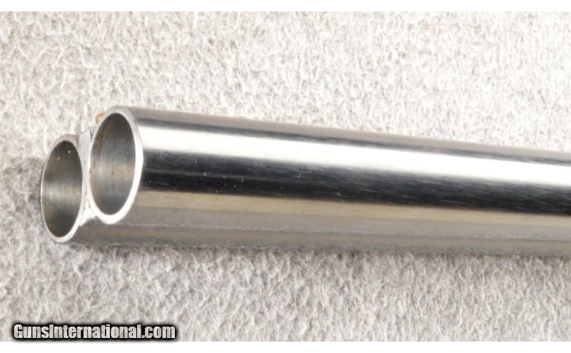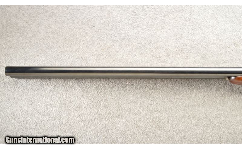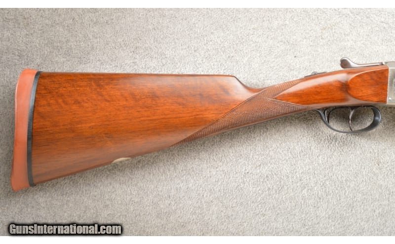 Description: Ugartechea (Spain) model 30 side-by-side shotgun chambered in 12 gauge. This gun features 27.75" barrels with a smooth concave rib and a front bead sight, chambered for 2 3/4" shells, extractors, fixed chokes (Right - IC, Left - IMP MOD), straight grip walnut stock, stock measurements (DC - 1 5/8" and DH - 2 5/8") with a slight right cast, splinter forend, lightly engraved coin colored receiver with disc set strikers, top lever right of center, auto safety, two triggers, London Guns recoil pad with a slightly distorted shape from sitting. Excellent condition overall. 12 Gauge SOLD Chambers: 2 3/4" chambers. Metal Condition: "95%, consisting of normal wear with finish wear and blotching in a couple spots on the right side barrel by the muzzle. Wood Condition: "95% +, consisting of light surface compression marks. Bore Condition: Bright smooth bores. Barrels: 27 3/4" barrels. Triggers: Two. Stock Dimensions: LOP 14.75". Fore End: Splinter. Butt Pad: Rubber. Weight: 6.75 lbs Sights: Bead. Chokes: Fixed. Item Location: Owatonna, MN |