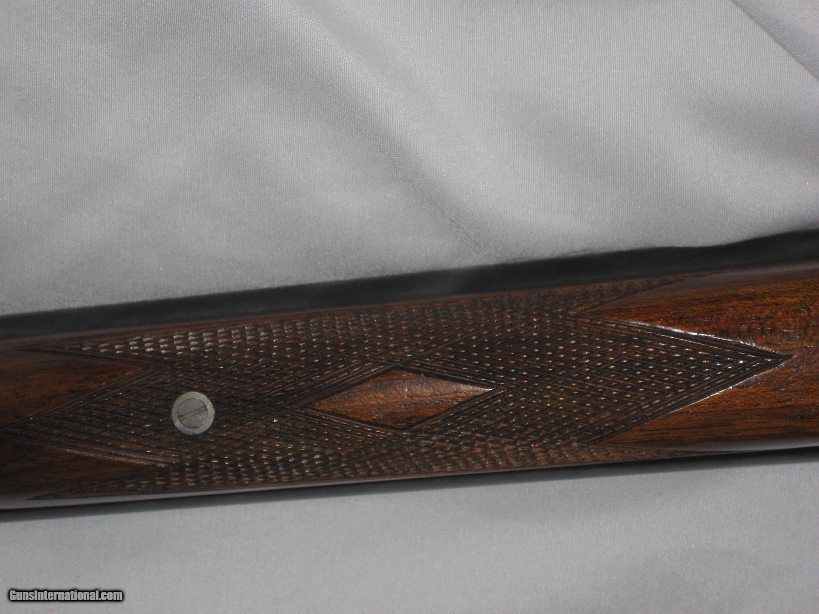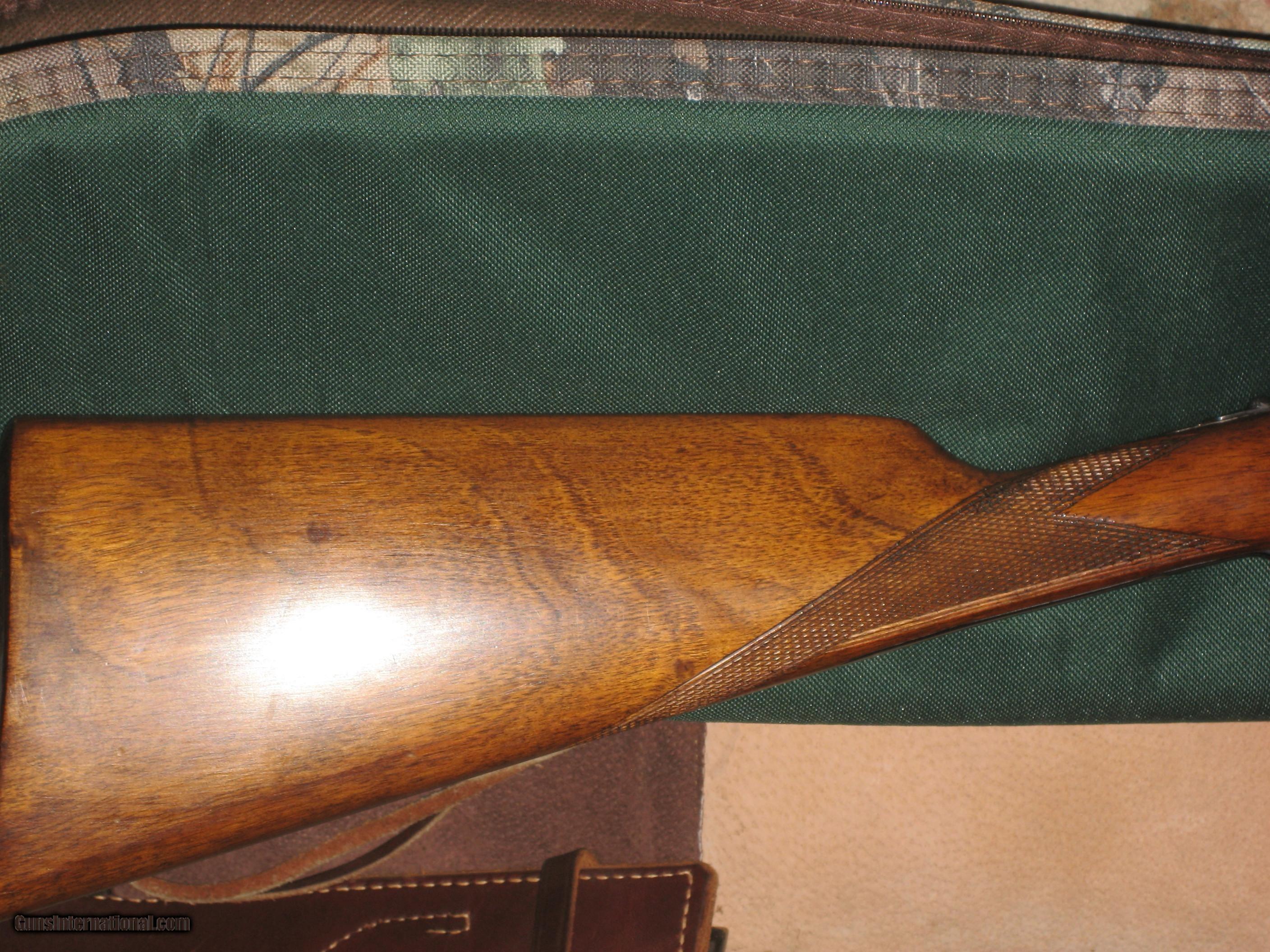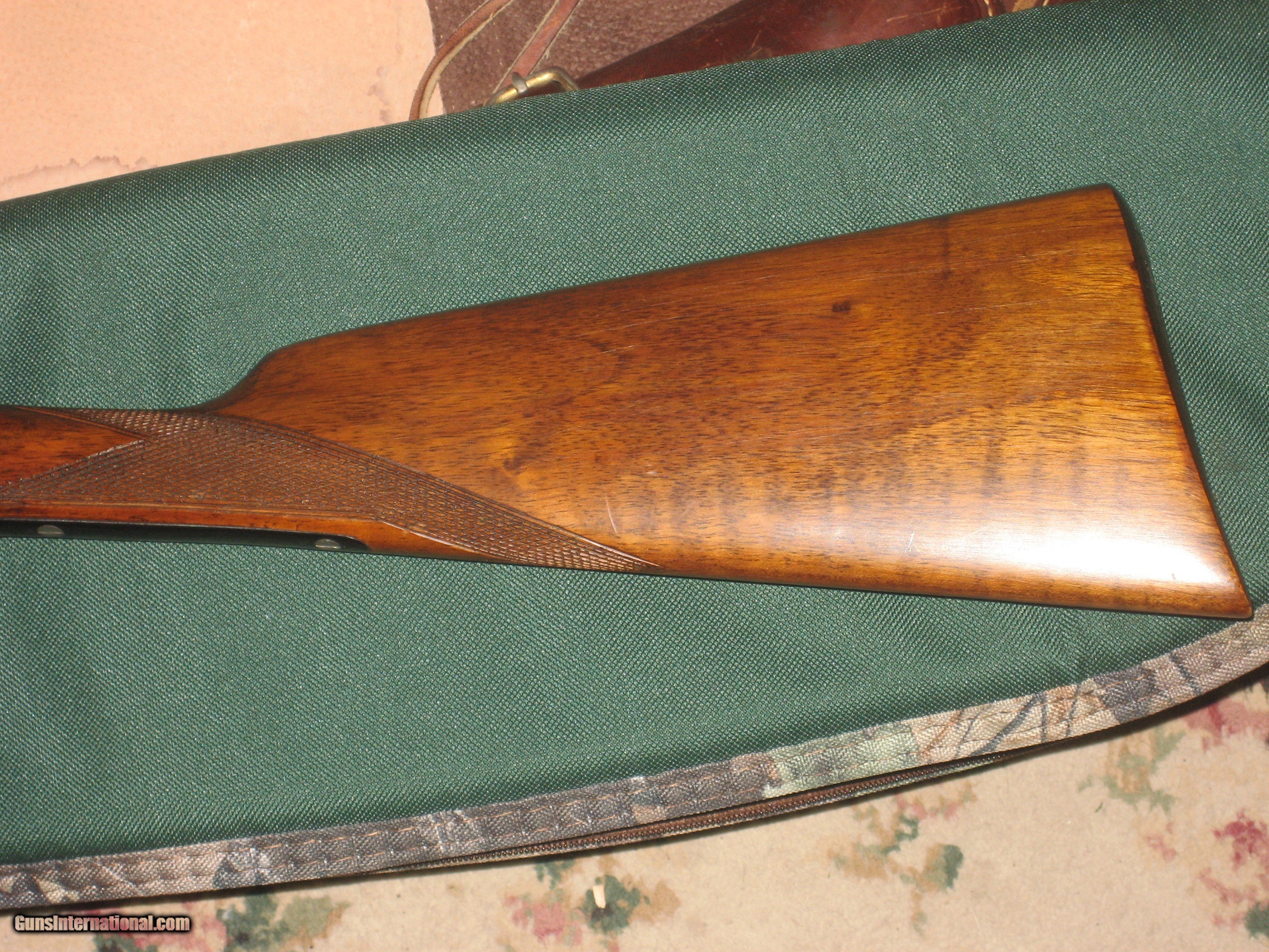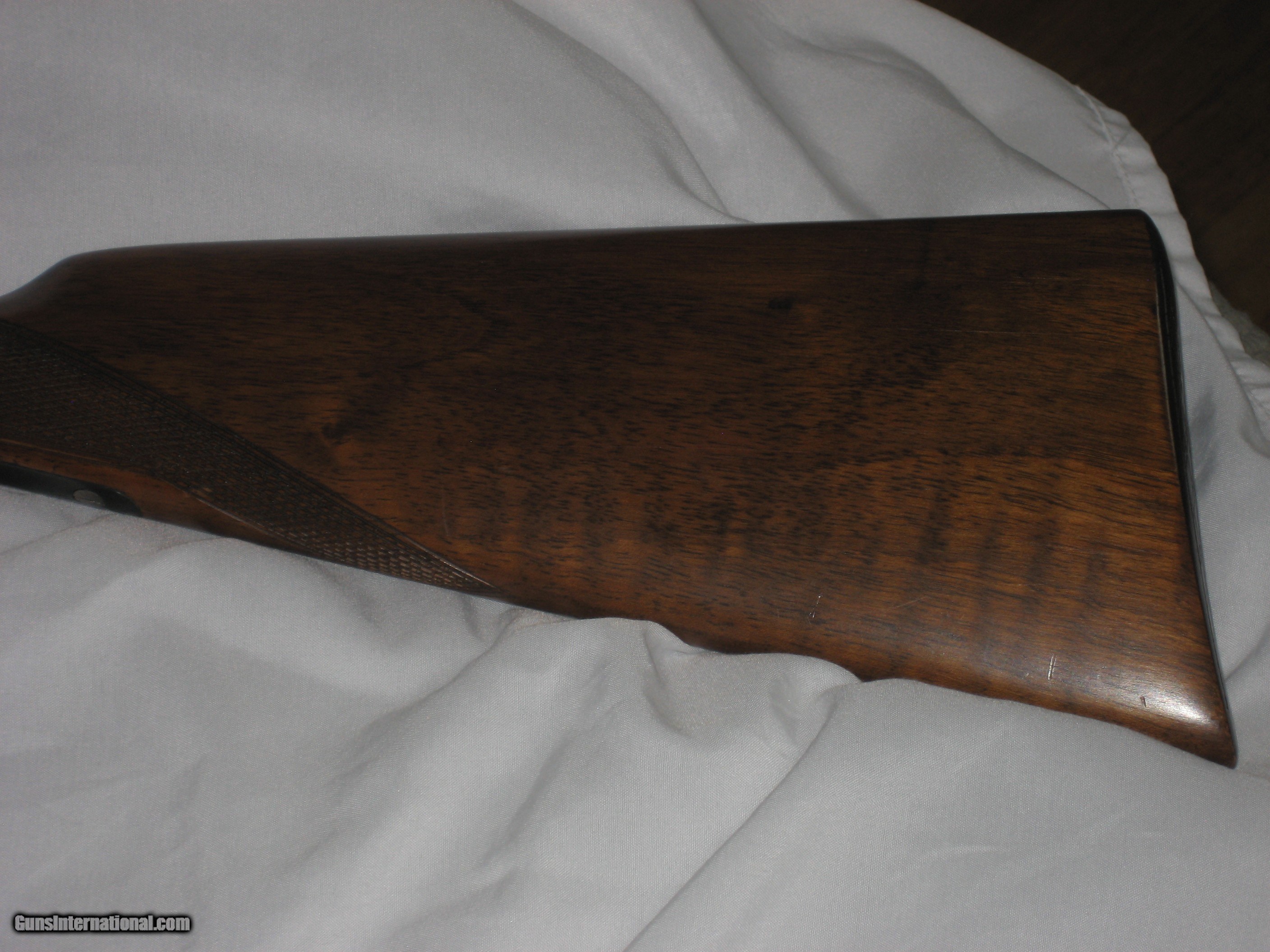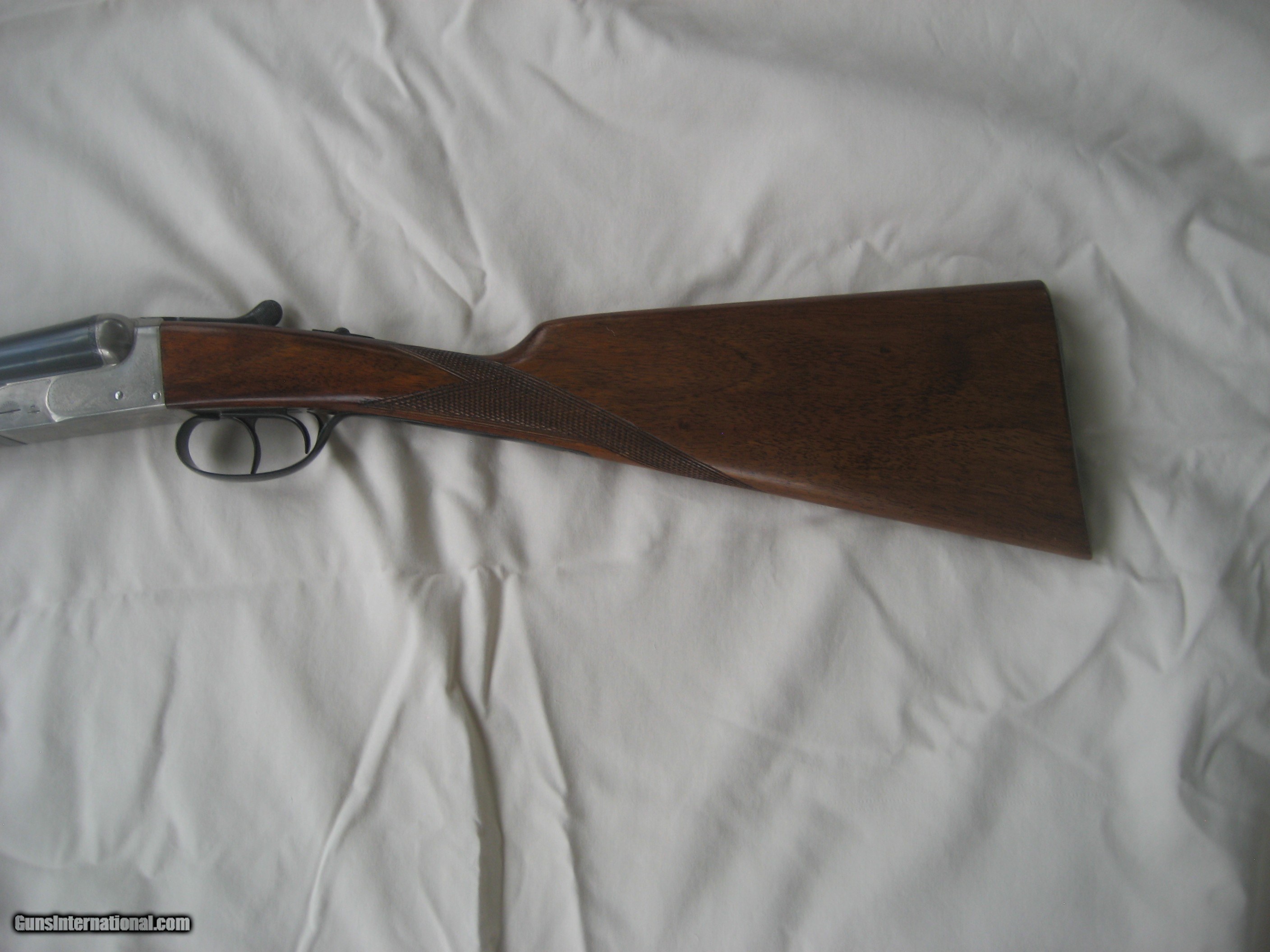 Description: SALE PENDING: You are looking at a 20 bore Parker Hale boxlock by Ugartechea. This shotgun is in mint condition. I purchesed it several years ago for a collector's estate who collected 20 gauge shotguns especially SxS's. I was told at the time of my it was most likely unfired, as he had so many shotguns that were. He was not a hunter just a collector. The pictures tell the story, I cannot guarenteee it was never fired but that is what I was told and again from all appearences, assume, that coulld be true. A few years after my purchase, I learned the man's widow who was cleaning out the sheds and barns, had paid a local junk hualer to clean a shed out that was full of nothing but empty gun boxes and papers, alas and to my chargrin, I will never know if the the box and papers for this gun were there. Anyways, this gun is as the pictures show it to be, I find absolutly no wear of faults on it it has a 27.5" barrels they are choked full and Mod ( 1 star and 3 stars) LOP from the front trigger is 14.3/8", to the factory checkered butt., The English stock appears to ever so lightly cast off for a right handed shooter.This gun swings like a wand and only weighs 5 lbs 12 oz. It has double triggers and extractors. This is I believe an earlier PH as there are set screws on the main screw on each side. These set screws were later discontinued, probably as a cost saving measure, but they are a nice touch, non the less. this is my first listing on this site. So if you need more pics or info email me .I will hold 30 days on lay a way, with 1/2 down plus $50.00 shipping Ins fee. The gun will be shipped in a new plastic gun box you can keep. Money order or certified funds only, NO RETURNS ON LAYAWAY , Good Luck ATTENTION: When is shotgun was listed the wrong weight was SHOWN IN THE SPECS. This gun weighs only 5lbs 12oz the original listing showed it at 6 lbs 12 oz .This shotgun is a very well balanced wand, it swings beautifully. These little doubles are no longer made and should only go up in value.One in this condition does not come along very often. SOLD Shotgun Gauge: 20 Gauge Manufacturer: Ugartecheaa Model: Parker Hale Bore: 20 Chambers: 23/4 Ejectors: extractors Condition: Mint Metal Condition: Mint Wood Condition: Mint Bore Condition: Mint Barrels: mint Action: SxS Triggers: double Stock: Checkered Walnut Butt Pad: checkered butt stock LOP: 14 3/8 Weight: 5lbs 10 oz Sights: front bead Chokes: fixed Choke Left: full Choke Right: mod Engraving: standard Uggie scroll |