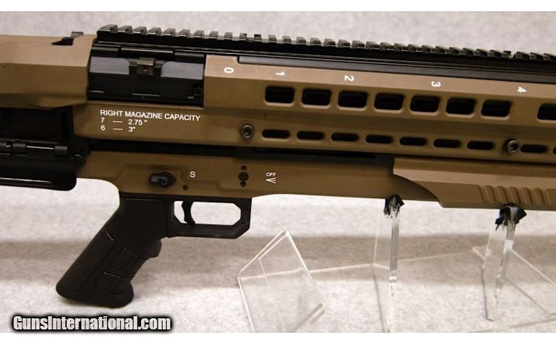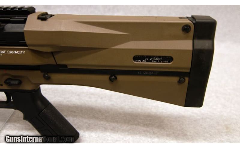 Description: UTAS UTS-15, chambered in 12 Ga. Features include: 3 in. chamber, bullpup configuration, 18 1/2 in. barrel threaded for Beretta-style choke tubes, 15 (UTS-15) shot, two 7 shot alternately feeding or selectable mag. tubes with selector switch, no sights, pistol grip, polymer receiver, top Picatinny rail, FDE finish, 6.9 lbs. 12 Gauge SOLD Chambers: 12 Ga Metal Condition: Excellent Bore Condition: Excellent Barrels: 18.5' Stock Dimensions: 12' Sights: None Item Location: Fort Mill, SC |