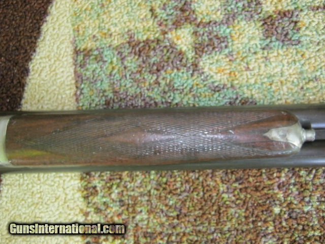 Description: 26 3/4" BARRELS ARE CHOKED MOD AND IMP MOD. 2 1/2 CHAMBERS WITH EXCELLENT BORES. DOUBLE UNDER LUGS AND HIDDEN THIRD FASTENER PROVIDE FOR A TIGHT LOCK UP. 14 3/8" LENGTH OF PULL WITH A 3" DROP. AND YES, IT WEIGHS JUST 6 POUNDS! MOST OF THE BARREL BLUE IS STILL THERE. WOOD IS SOLID, WITH A SLIVER MISSING FROM THE FOREND. VARNISH HAS BEEN ADDED. THE CHECKERING IS STILL SERVICABLE. THIS IS A WONDERFULLY LIGHT WEIGHT AND BALANCED PRE WAR FRENCH MADE HUNTING GUN IN OVERALL VERY GOOD CONDITION. AND, IT HAS THE SWAMPED TOP RIB, CHARACTERISTIC OF FRENCH GUNS. THIS FEATURE CAUSES ONE TO NATURALLY KEEP THEIR CHEEK ON THE STOCK, WHICH CAN BE AN AID TO ACCURATE SHOOTING. NOT SURE HOW OLD THIS GUN IS, AS EARLY VC RECORDS HAVE BEEN LOST. ANY INPUT WOULD BE APPRECIATED...SOME GUIDELINES: All cartridge firing firearms must be transferred through a licensed FFL dealer in your state. Buyer to supply a signed copy of local dealer’s license before shipment will be made. A C&R License is acceptable for C&R firearms, (guns determined to be C&R’s by ATF and/or guns known to be at least 50 years old). Antique firearms and replicas require buyer to supply proof of age. Some areas require an FFL transfer for antique & black powder firearms (New Jersey, NYC, etc.) PAYMENT OPTIONS: Postal Money Orders and Cashier's Checks only are acceptable. SHIPPING: Buyer pays shipping costs. All items are shipped via priority mail insured. Costs vary depending on weight, postal zone and insurance value. SAFETY NOTICE: Buyer is solely responsible for determining that a used gun is safe to shoot. The firearms offered have not been test fired but have been given a visual inspection only for purposes. Buyer agrees to hold seller harmless against damages, injury, or death caused by defective merchandise. RETURN POLICY: Returns are handled on an individual basis. You can presume that I know what I am selling. You are expected to know what you are buying. All items are guaranteed to be as advertised. If I make a gross error in description, you may of course, return item with my apology. CONSIGNMENTS ACCEPTED: I sell many items on consignment. Please call during business hours, est, for appraisals and terms. SOLD Curio/Relic: Yes |