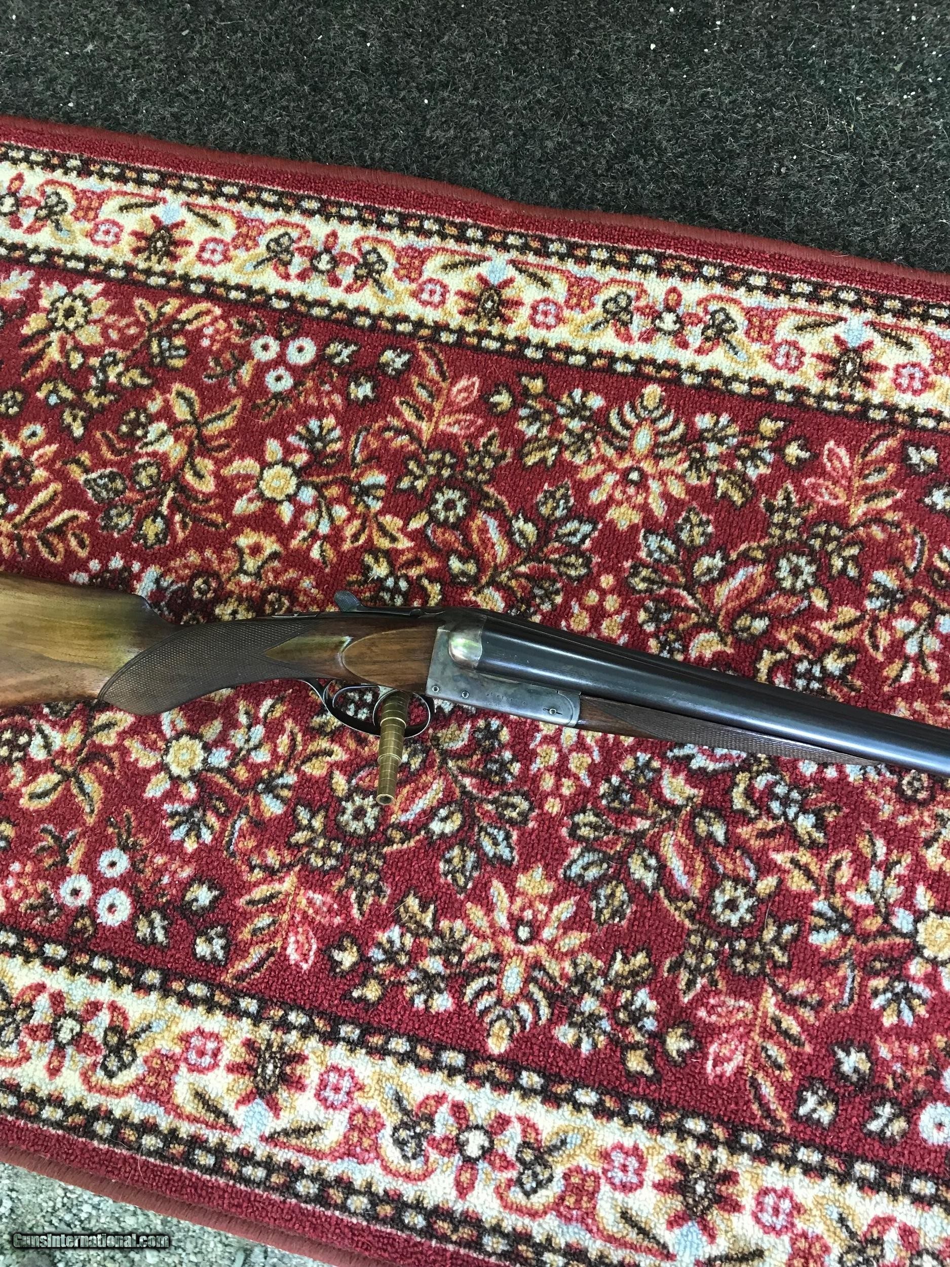 Description: THIS IS A FINE LITTLE FRENCH 16 GA FIELD GUN, MADE BY VERNEY CARRON FRES...THE 27 1/2" BARRELS ARE CHOKED IC AND IC. 2 3/4" CHAMBERS WITH EXCELLENT BORES. TOP RIB IS SWAMPED BELOW TOP OF BARRELS...BUILT ON A STRONG BOX LOCK ACTION WITH DOUBLE UNDER LUGS AND A GREENER CROSS BOLT, THIRD FASTENER. ACTION ALSO FEATURES SIDE CLIPS, MATED TO THE BARRELS...SEMI PISTOL GRIP WALNUT STOCK AND SPLINTER FOREND EXHIBIT EXTENSIVE, FINE CUT CHECKERING. LENGTH OF PULL IS 14" OVER A HORN BUTT PLATE...SLING SWIVELS ARE INCLUDED...WEIGHS JUST SIX POUNDS...OVERALL, VERY FINE, ORIGINAL CONDITION...BEST GUESS, IS THAT THIS IS A LATE PRE WW2 ERA MADE GUN AND AS SUCH, WILL SHIP TO FFL OR C&R... SOLD Curio/Relic: Yes |