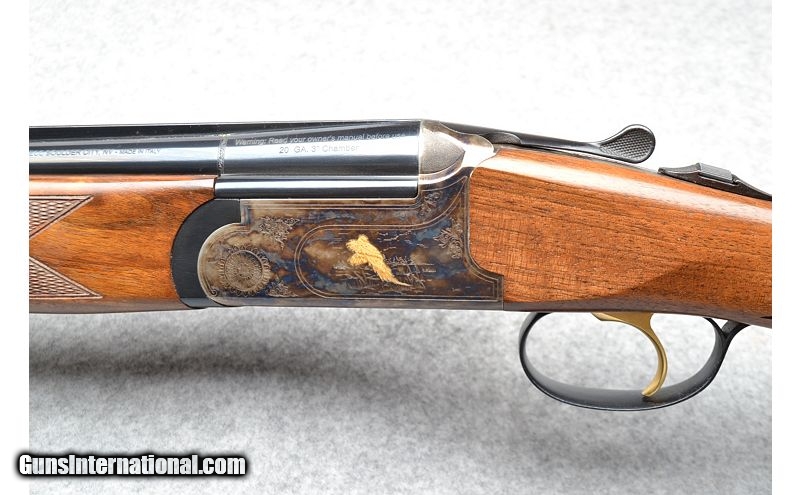 Description: SOLD Manufacturer: SN: 191241 ; Made in Italy Caliber Info: 20 Gauge Chambers: 3" / 76mm Metal Condition: Excellent with vivid case colors, scroll and game scenes Wood Condition: Very Good overall, right pistol grip shows some mild checkering point dulling; a few handling marks and some finish dulling on stock Bore Condition: Clean Barrels: 28 inches Over and Under Barrels with top vent rib; Ejectors Triggers: Single mechanical trigger, manual safety with barrel selector Stock: Factory wood, checkered pistol grip Stock Dimensions: LOP 14 1/2" ; DAC 1 5/8" ; DAH 2 1/8 Fore End: Schnabel style, checkered wood Butt Pad: Factory black rubber recoil pad Weight: 6 lb 7 oz Sights: Top vent rib with front metal bead Chokes: Interchangeable choke tube system with 5 chokes Extras: Factory Locking Travel Case with extra chokes and wrench Item Location: Greenville, SC |