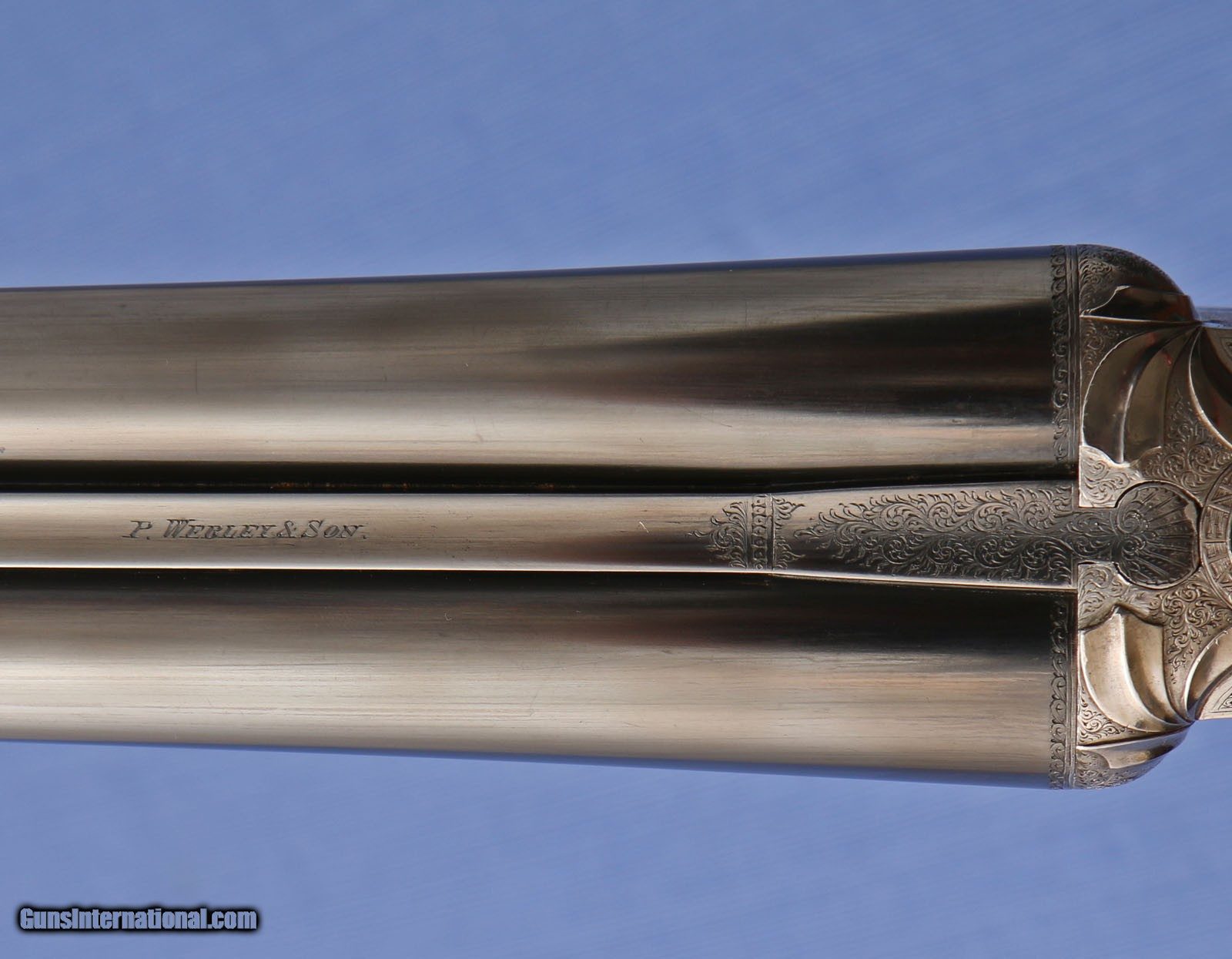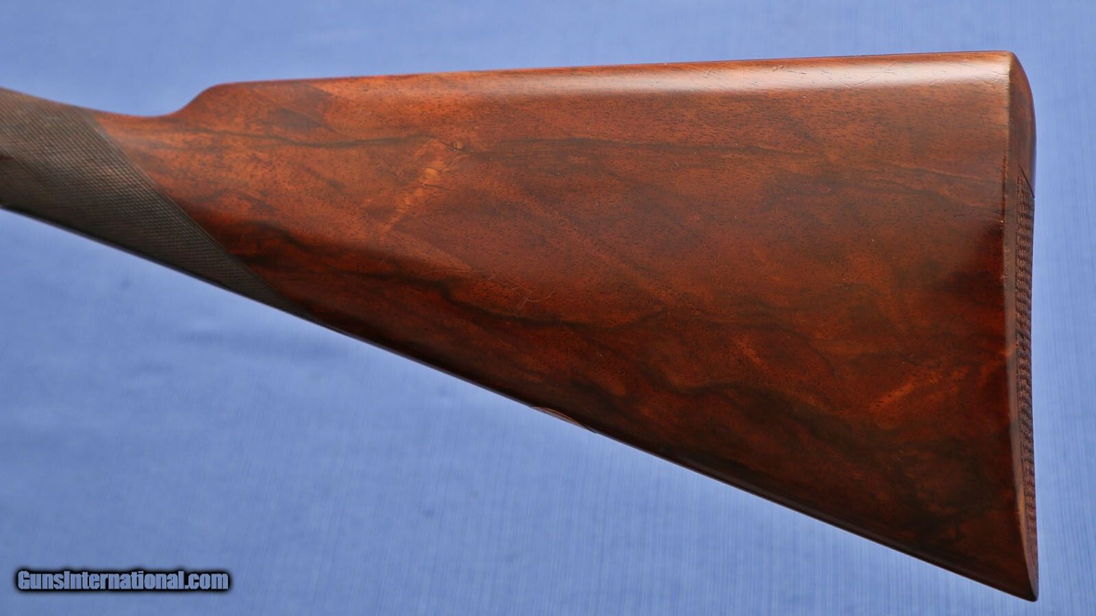 Description: P. Webley & Sons - 12ga - 27" 2-1/2" IC / M (.013 / .023) LOP 14-3/8", Drop 1-3/8" to 1-7/8", Slight Cast Off, Weight 6 lbs. 7 oz. P. Webley & Sons was part of the merger in 1897 that resulting in Webley & Scott. New barrels by Elderkin & Son in 1983. Barrels are tight on face - everything works as it should Good Solid Usable Antique.