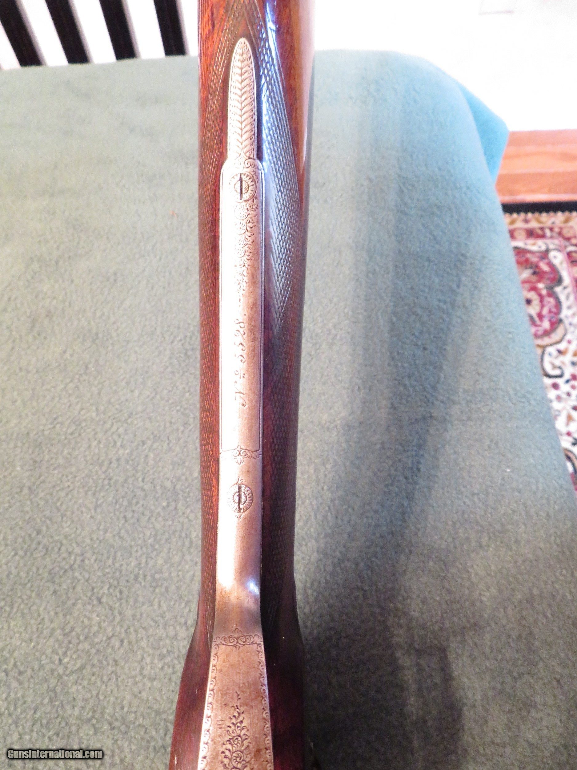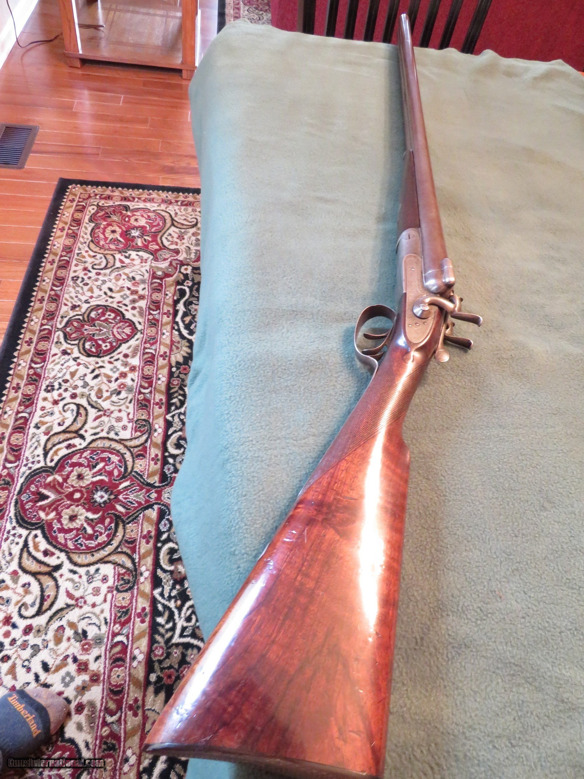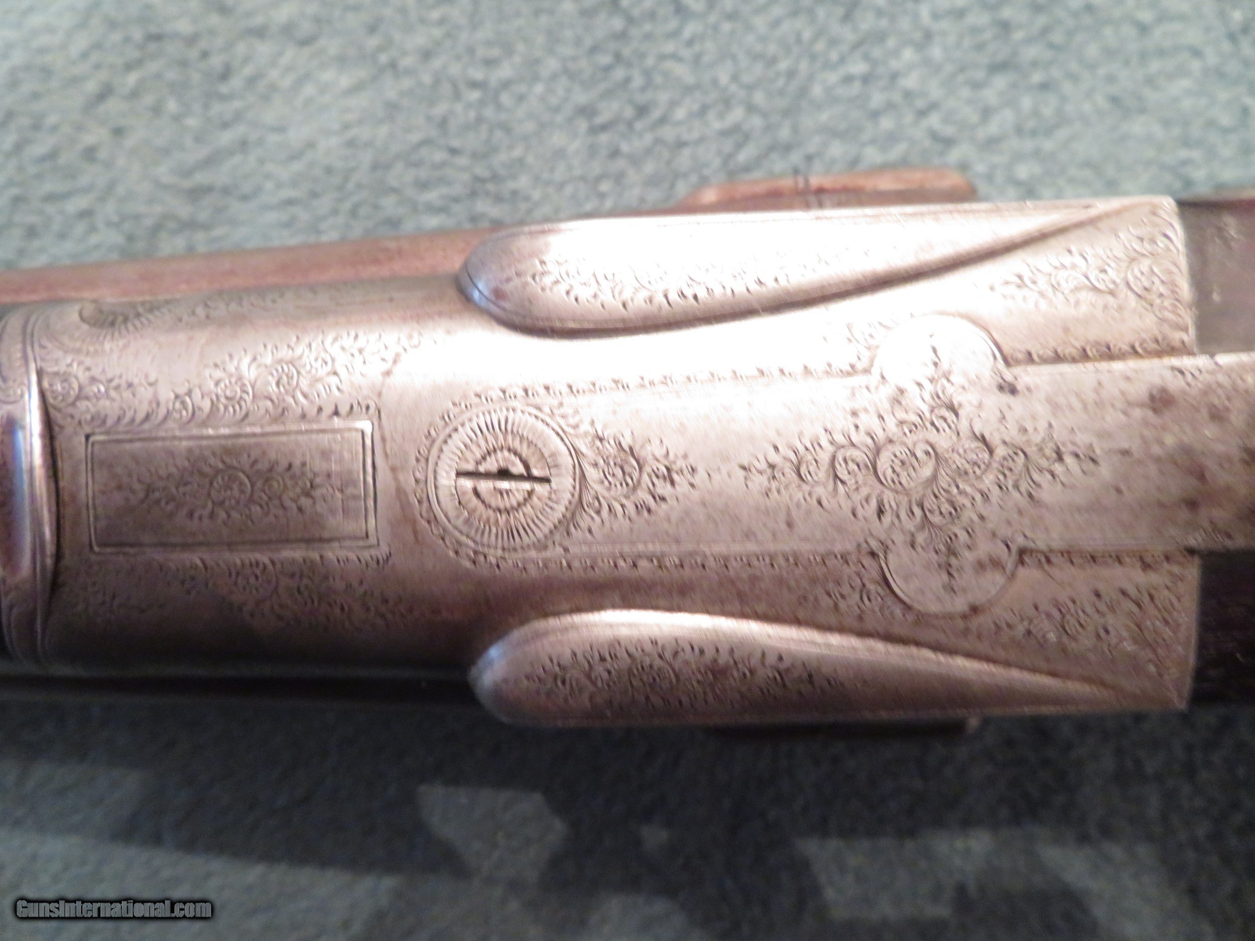Description: This is one of the rarest guns in my 40 plus years of collecting W&C. Scott Guns. This was an attempt by Scott to produce a gun that would not shoot loose. This ungainly looking gun did not sell well, and very few were made. The price reflects the condition of this rare gun. It has seen a lot of use over the last 146 years. Finishes have faded and checkering shows lots of wear. Bores are somewhat shiny, but have some pitting. This gun would be an excellent restoration candidate, but would be a critical addition to the serious collector of Scott guns. PRICE Slashed TO $500.00 Plus $50. Shipping. (I will only accept USPS Postal Money Orders On This Item! FFL not required on this antique firearm. If you have questions call Jim (248) 266-6494 SOLD Antique: Yes Manufacturer: W&C. Scott Model: Quadruple Bolt Serial Number: 5528 Bore: 12 Chambers: 2&1/2 inch Condition: Good Metal Condition: Good Wood Condition: Good Bore Condition: Fair Barrels: 30 inches Barrel Type: Damascus Action: Sidelock Triggers: 2 Gauge Info: 12 LOP: 14 Weight: 9 pounds Manufacture Date: 1874 Choke Left: Cylinder Choke Right: Open Engraving: Fine Scroll Extras: No Case: No Item Location: MI Proof:Black: Black |