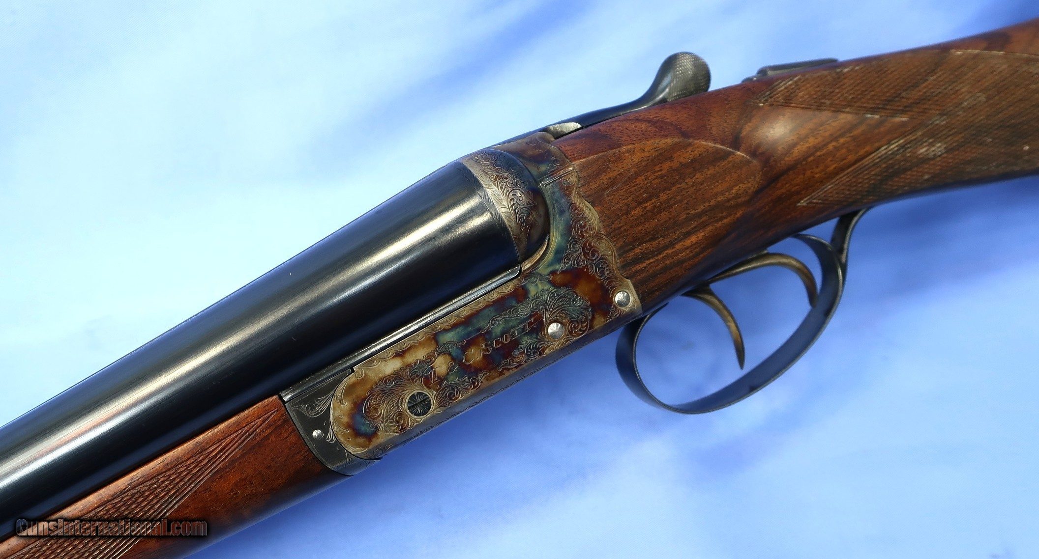 Description: Excellent near new late production W&C Scott The Bowood 12ga side by side shotgun with leather travel case and a signed copy of The History of W.C. Scott Gunmakers. Purchased new by the consignor in 1998 in the UK. 28” barrels choked IMP/MOD. 14 3/4” LOP, 2.5”/1.5” drop at heel and comb with slight cast for right handed shooter. Hand scroll engraved, straight English stock, high grade wood, push button forend, ejectors and double triggers. This was one of the last few W.C. & Scott Bowood models produced. This one having 28” barrels instead of the more common 26”. All numbers match. A beautiful example showing just a few minor handling marks over the years. 6lbs 5 oz. Excellent modern leather travel case with WC Scott paper label on inside, featuring solid lock (with key) keeps this one nicely protected for transport. TERMS: Items will be held on first come first serve basis. Payment should be made within five business days. Personal check, cashiers check, and money orders accepted. Visa, Mastercard and Discover are accepted with added 4%. Your purchase acknowledges and removes all liability from the seller in the operation or use of the firearm. Please know your local laws prior to and void where prohibited. Personal checks may take a few extra days to clear before shipping. I visually inspect each item, yet all used firearms should be checked by a competent gunsmith prior to firing. I try to describe the major features and flaws in each item, yet things do get missed so please review the pictures as well and please ask questions before you commit to purchase. Three day non-firing inspection with refund minus shipping unless otherwise noted. Registered with CA DOJ for firearm transfer, but please check if approved by state of CA prior to (C&R items are exempt from this restriction if they abide by magazine and assault weapons laws). Shipments to 03 Curio & Relic FFL holders is allowed if it complies with state and local laws. Please note several state including NY, NJ, CA etc only allows shipment of C&R handguns and rifles to an 01 or 07 FFL dealer. Sales only in USA. I ship using FEDEX and USPS. Sorry, no layaway available. Internet sales only, sorry no local pickup. However I can arrange for transfer through other local retail FFL’s in the twin cities area if needed (transfer fees may apply). If you are a new user without feedback (NR), please contact me prior to . Transfer FFL information: I will need a copy of your dealer's FFL license (or Curio & Relic license if the item is eligible) along with appropriate paperwork if required. E-mail copy or mailed hardcopy only, sorry no faxes. It's your responsibility to have your dealer contact me with this information, as I cannot contact every buyer and their corresponding dealer for every sale. Antiques (pre 1898) only require proof of age (driver’s license) unless FFL required by local/state law. The best way to reach us is through e-mail. Feel free to call directly for any reason and we will return your call within 24 hours. Shotgun Gauge: 12 Gauge Price: $4,995.00 Shipping: $75.00 Contact Seller |