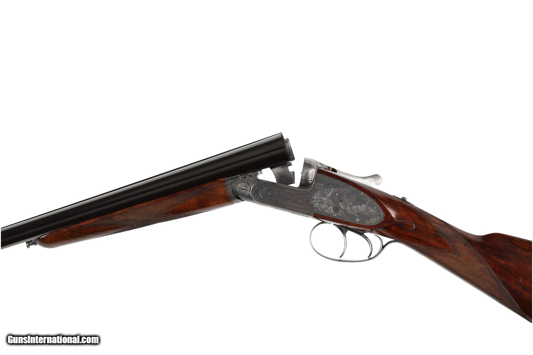 Description: Gun is in very good condition with some light handling marks. Assisted open. Small part of stock could use a rub up. SOLD Manufacturer: Watson Bros Model: Best SLE Caliber Info: 20 Gauge Ejectors: Yes Condition: Preowned Metal Condition: Very Good Barrels: 28 Action: Sidelock Triggers: Double Gauge Info: 20 Gauge Stock Comb: 1 3/8 Stock Heel: 2 1/8 Stock Cast: Off Fore End: Checkered LOP: 14 5/8 Rib: Concave Weight: 5.750000 Chokes: C/IC Case: Leather Luggage |