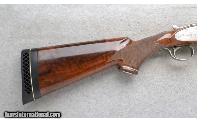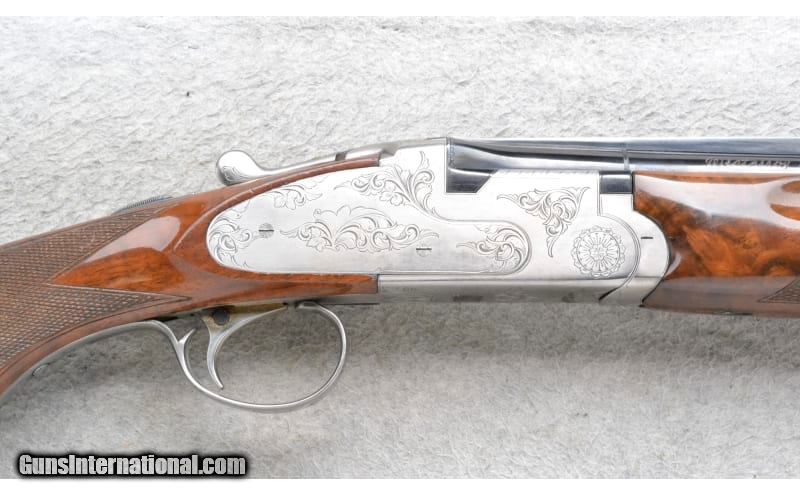 Description: This Weatherby Model Athena is an over and under shotgun in 20 Ga. It has 26 inch ventilated rib barrels with ejectors. A brass bead front sight with an aftermarket green high visibility sight behind it. With 3 inch chambers it comes with a Skeet and IC choke tube in the gun. It has a single trigger with a selector button. The butt stock is a checkered grip walnut pistol grip with a rosewood cap. the forearm is a checkered grip walnut with finger grooves. The receiver is nicely engrave, 20 Gauge SOLD Chambers: 3 inch. Metal Condition: Good. Barrel has some handling/use marks. Wood Condition: Good. Some surface blemishes and handling marks. Bore Condition: Shiny. Barrels: 26 inch ventilated rib barrels with ejectors. Triggers: Single trigger with selector button. Stock Dimensions: LOP 14 1/2 inches. Fore End: Checkered grip walnut with finger grooves. Butt Pad: Pachmayr White Line black rubber recoil pad. Weight: 6 lb. 12 oz. Sights: Brass bead front with an aftermarket high visibility green behind it. Chokes: Comes with a Skeet and IC choke tube in the gun. Item Location: Richfield, WI |