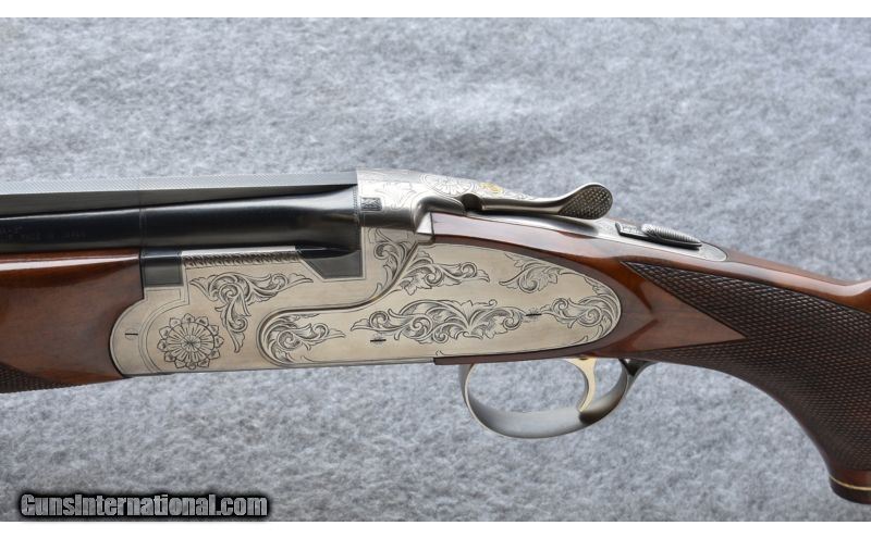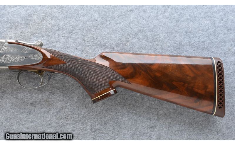 Description: SOLD Caliber Info: 12 ga. Chambers: 3 Metal Condition: Shows good factory finish with small streaks and other marks from field use. Also shows some freckling atop a handful of small lighter colored patches on the barrels. Wood Condition: Shows good factory finish with minor handling marks. Finish has begun to flake at the grip cap. High luster finish is beginning to form numerous tiny cracks and wrinkles. Bore Condition: Bright Barrels: 28" w/ ejectors Triggers: Single Selective Stock Dimensions: 14" LOP; 1 1/2" DAC; 2 1/4" DAH Fore End: Deeley Release Butt Pad: Factory Plate Weight: 8 lb. 4 oz. Chokes: Tubes: IC / Mod. Item Location: Post Falls, ID |