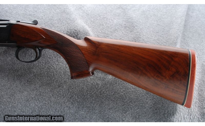 Description: This is a Japanese made Weatherby features a high gloss stock set with a rosewood grip cap. SOLD Caliber Info: 20 Gauge Chambers: 3 Metal Condition: Scattered handling marks. Wood Condition: Scattered scratches and dings. Bore Condition: Strong bores. Barrels: 28" vent rib barrels. Triggers: Single Selective Stock: Capped pistol grip. Stock Dimensions: 13 1/4" LOP, 1 1/2" DAC, 2 1/2" DAH Fore End: Finger Groove Butt Pad: Red recoil pad. Weight: 6 lbs. 14 oz. Sights: Brass bead. Chokes: Fixed - IC/Mod Item Location: Gonzales, LA |