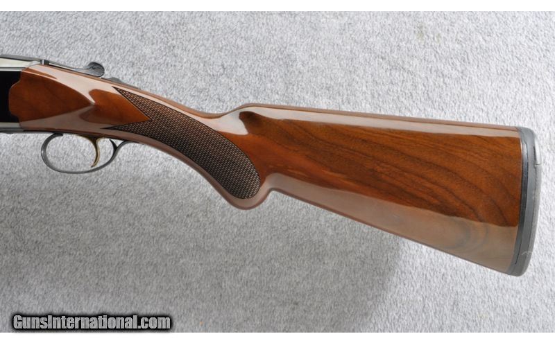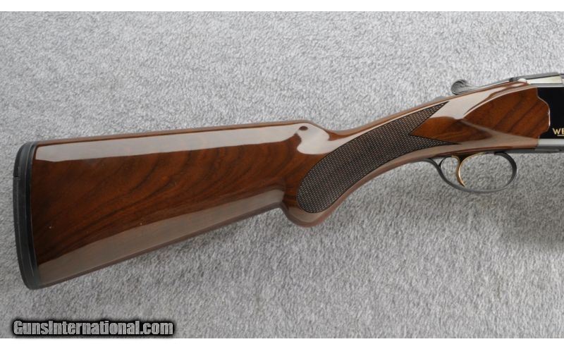 Description: SOLD Caliber Info: 12 Gauge Chambers: 3 Metal Condition: Appears in near new condition Wood Condition: Like new with one small diamond of the left side grip area broken Bore Condition: Bright Barrels: 28" Vented Rib with Auto Ejectors Triggers: Single selective at the top tang safety lever Stock: Checkered Grade "A" walnut Prince of Wales grip Stock Dimensions: 14 1/2" LOP Fore End: Checkered point pattern with Anson style release Butt Pad: Weatherby rubber Weight: 7 lbs 4 oz Sights: Metallic bead front Chokes: Integral Multi Choke Full, Modified & Improved Cylinder Extras: Choke case with wrench & extra choke tube Item Location: Grand Junction, CO |