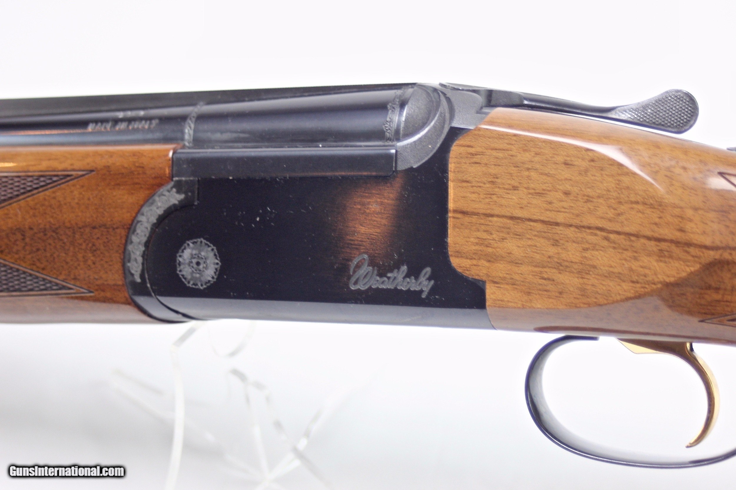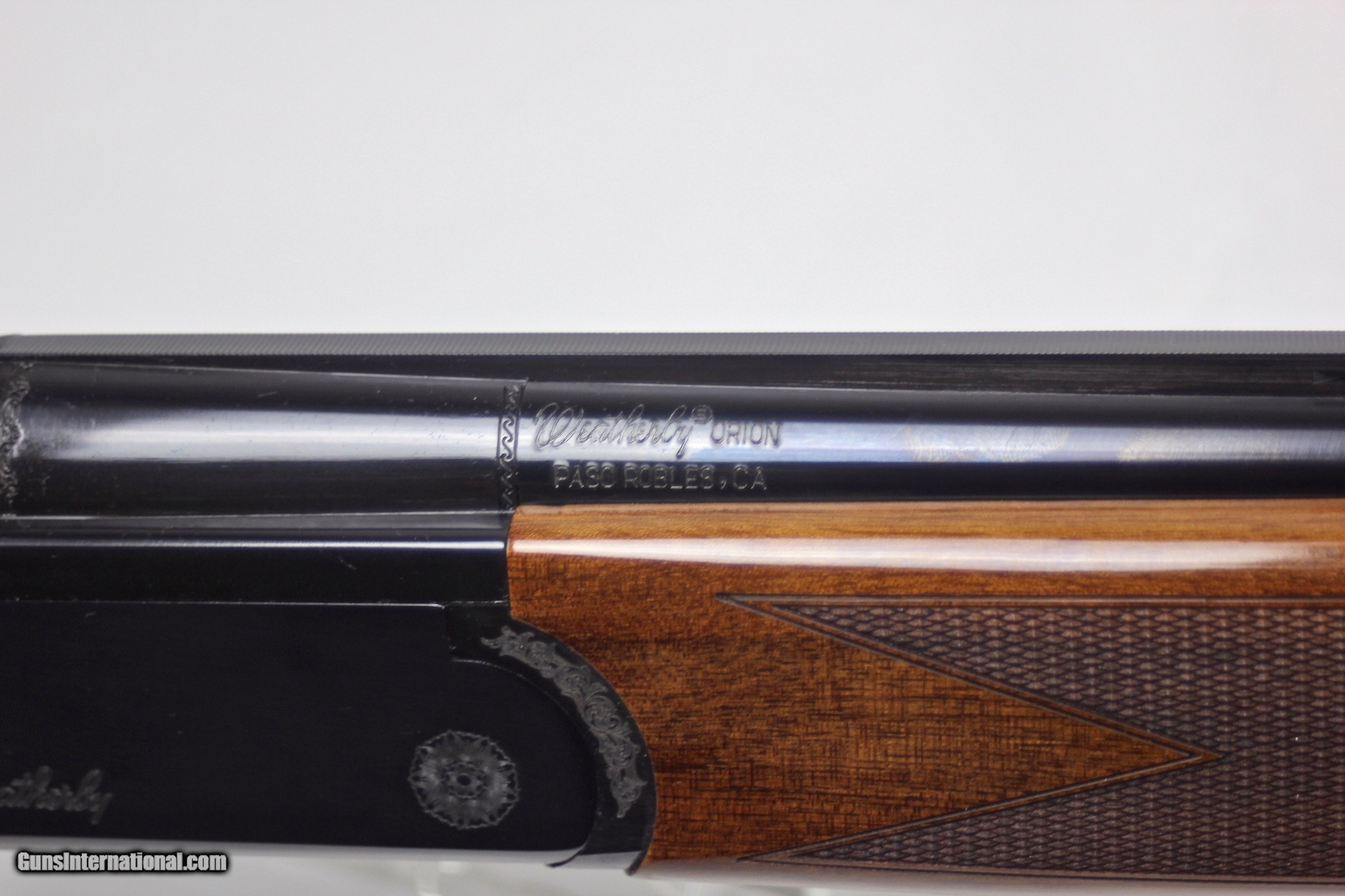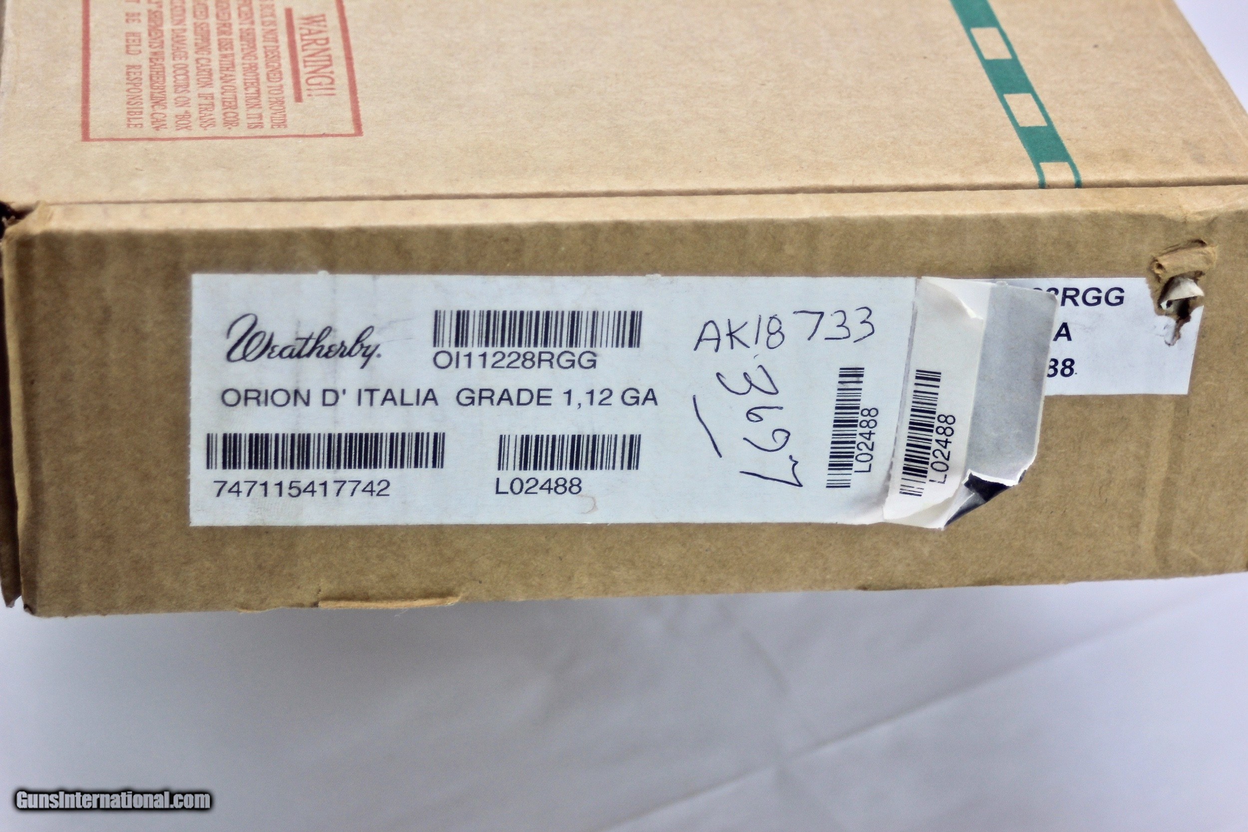 Description: Offered ia a Weatherby Orion D'Italia over-under shotgun in 12 gauge with 3" chambers. The gun is equipted with 28" barrels with screw in choke tubes. The barrels of the gun are chrome lined with full length vented rib. All metal surfaces are finished in a high luster blue. The stock and forend are nicely grained European Walnut and checkered on all handling surfaces. The grip is a Prince of Wales design. The gun comes in it's original box with all papers, screw-in chokes in Full, Modified and I.C., and gun lock. The gun appears to be in new condidtion with no scratches , dents or marks. SOLD Shotgun Gauge: 12 Gauge Manufacturer: Wetherby (Fausti) Model: Orion D'Italia Serial Number: L02488 Barrel Length: 28 Chambers: 3 Ejectors: Selective Condition: Like New Metal Condition: Like New Wood Condition: Like New Bore Condition: spotless Barrels: O/U Action: Box Lock Triggers: Single Selective Stock: Checkered Walnut Stock Comb: 1 5/8" drop at Comb Stock Heel: 2" Drop at Heel Stock Cast: Very Slight Cast On Fore End: Checkered Walnut Butt Pad: Smooth 1/2 LOP: 14 1/2" over pad Rib: Full Length Vented Finish: High Luster Blue Weight: 7 lbs. 10oz. Sights: Single Front Bead Manufacture Date: 2008 - 2011 Chokes: Flush Screw-in Case: Original Box Item Location: Coweta, OK |
