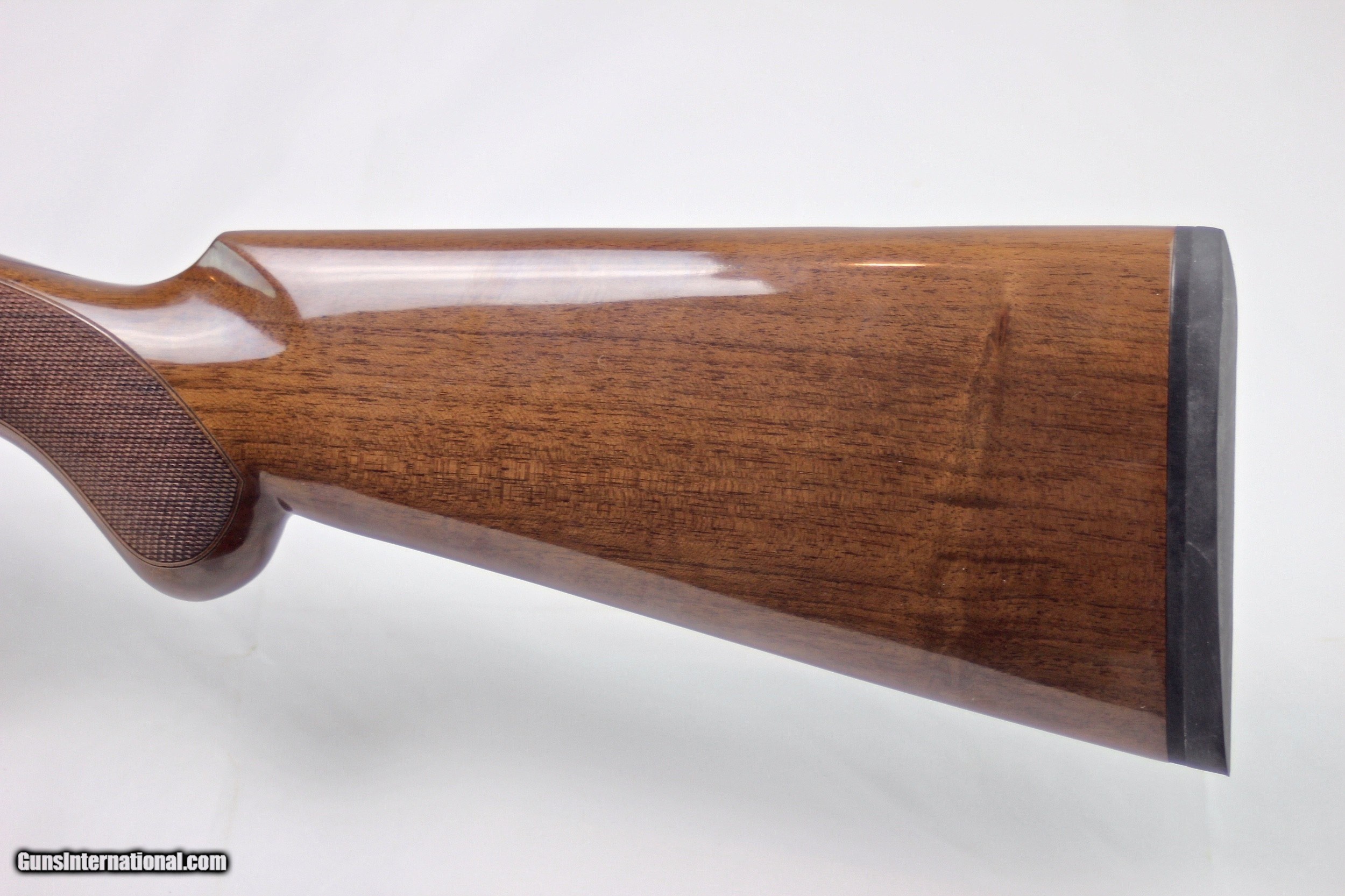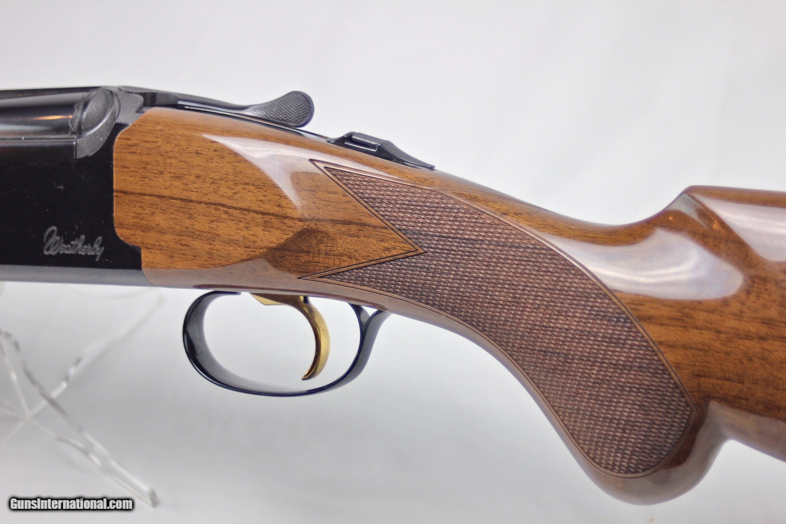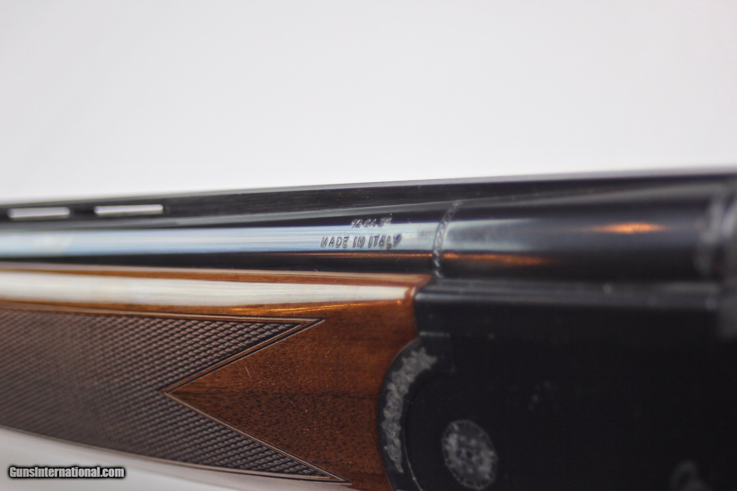 Description: Offered ia a Weatherby Orion D'Italia over-under shotgun in 12 gauge with 3" chambers. The gun is equipted with 28" barrels with screw in choke tubes. The barrels of the gun are chrome lined with full length vented rib. All metal surfaces are finished in a high luster blue. The stock and forend are nicely grained European Walnut and checkered on all handling surfaces. The grip is a Prince of Wales design. The gun comes in it's original box with all papers, screw-in chokes in Full, Modified and I.C., and gun lock. The gun appears to be in new condidtion with no scratches , dents or marks. SOLD Shotgun Gauge: 12 Gauge Manufacturer: Wetherby (Fausti) Model: Orion D'Italia Serial Number: L02488 Barrel Length: 28 Chambers: 3 Ejectors: Selective Condition: Like New Metal Condition: Like New Wood Condition: Like New Bore Condition: spotless Barrels: O/U Action: Box Lock Triggers: Single Selective Stock: Checkered Walnut Stock Comb: 1 5/8" drop at Comb Stock Heel: 2" Drop at Heel Stock Cast: Very Slight Cast On Fore End: Checkered Walnut Butt Pad: Smooth 1/2 LOP: 14 1/2" over pad Rib: Full Length Vented Finish: High Luster Blue Weight: 7 lbs. 10oz. Sights: Single Front Bead Manufacture Date: 2008 - 2011 Chokes: Flush Screw-in Case: Original Box Item Location: Coweta, OK |