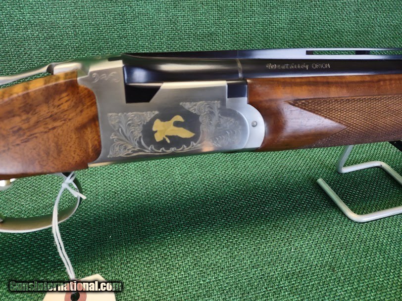 Description: We have received a verbal commitment on this shotgun. It will remain posted until we receive payment then it will go inactive. If anyone is interested in this item we will keep a list based on date of inquiry and contact you in the event it becomes for sale again or we acquire one just like it Considered by hunters and clay shooters to be a high quality and desirable shotgun, this Weatherby Orion Grade III Field Classic over-under double-barrel shotgun features a rounded pistol-grip and slim forearm, with oil-finish Claro walnut with fine line checkering. Receiver silver gray, with scroll engraving and gold game bird overlays. 12-gauge with 26" ventilated rib barrels. Screw-in choke tubes. This shotgun is considered used but in excellent, as new condition. It will be shipped with the 2 extended choke tubes shown in the picture with 26" barrels. This Firearm(s) must be shipped to an FFL 01 We accept USPS Money Order for immediate shipping and personal check and will ship upon check clearing. Shipping costs are actual postage to your address. I will pay the insurance to the amount paid. All you pay is the actual postage to the FFL. All items are for sale locally, so make contact as soon as you make your decision. SOLD Shotgun Gauge: 12 Gauge Manufacturer: Weatherby Model: Orion Grade III |