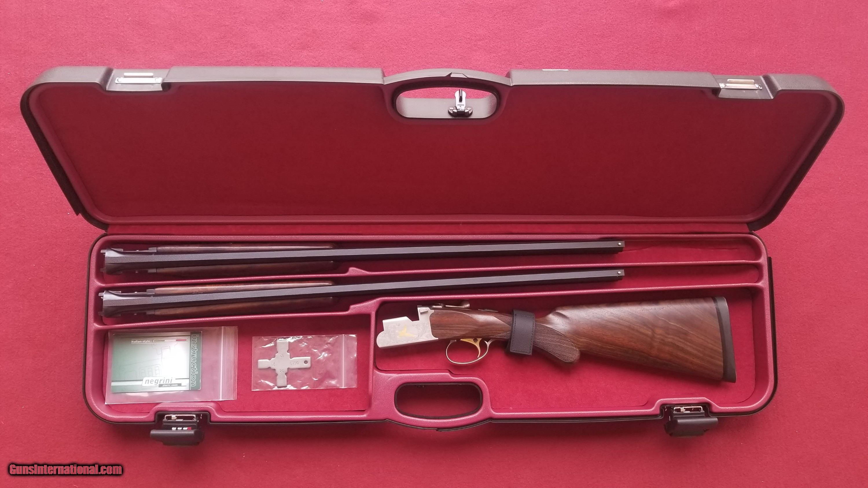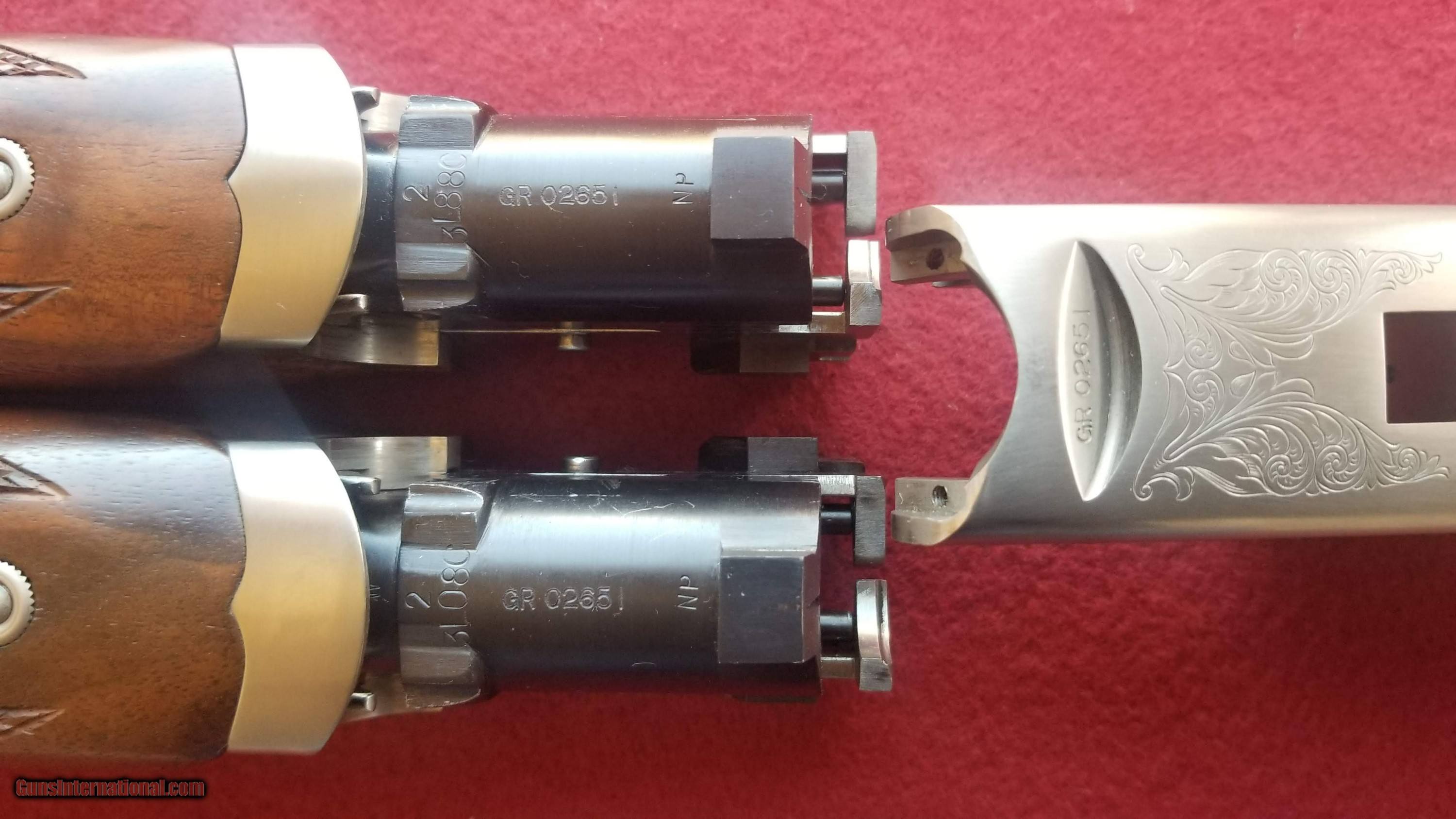 Description: ***Sold!***An impossible find! Incredible Grade III matched two barrel 20/28 set in near new condition! Fabulous SKB Japan workmanship. Gold inlayed receiver on a Prince of Wales style stock with 14 1/4" LOP. Bluing is absolutely mint with stunning wood on forearms and stock showing very, very minor handling. Bores are mint. Absolutely no corrosion, wear, or other issues with this set. Barrels lock up up tight exhibiting very little use. Wrench and two chokes each, M and F. Single selective trigger with ejectors. Note that the 20 ga is bored 3", a plus. This is an Atascadero, CA Weatherby, indicating post-95 production. Gorgeous Negrini lockable hard case. Will be meticulously packaged with extra internal felt wrapping of the three pieces and place in a heavy duty outer cardboard box. Shipping from non-FFL to FFL is $100 fully insured for the purchase price. Please add $15 for shipment east of the Mississippi. For FFL to FFL shipment if required, please add $25. Feel free to e-mail or call me at (303) 726-5108 with any questions or reasonable offers! SOLD |