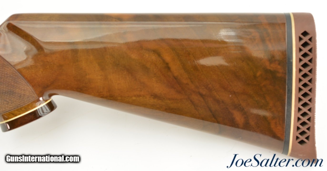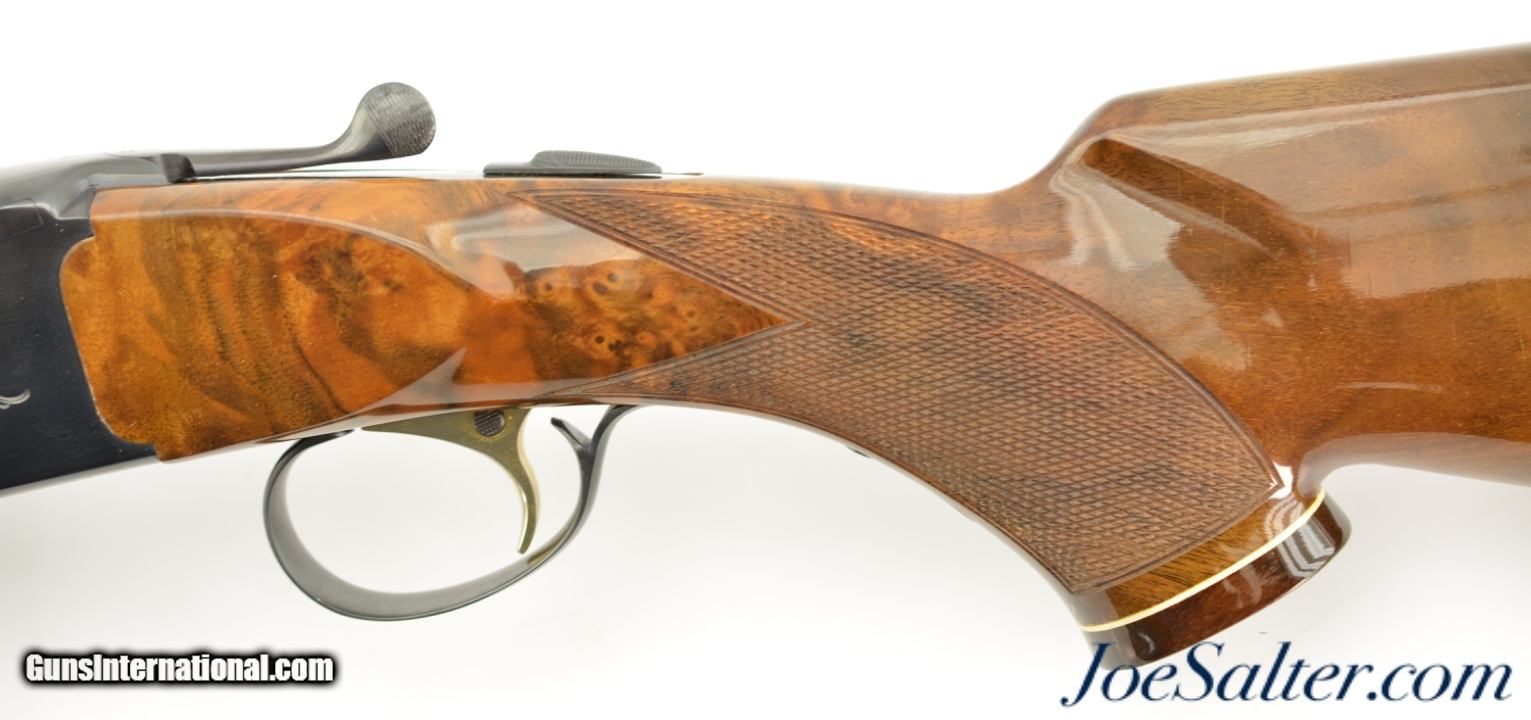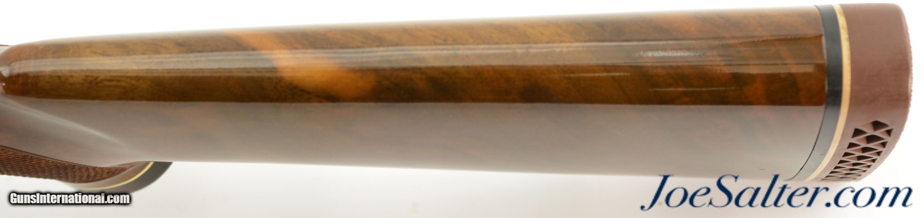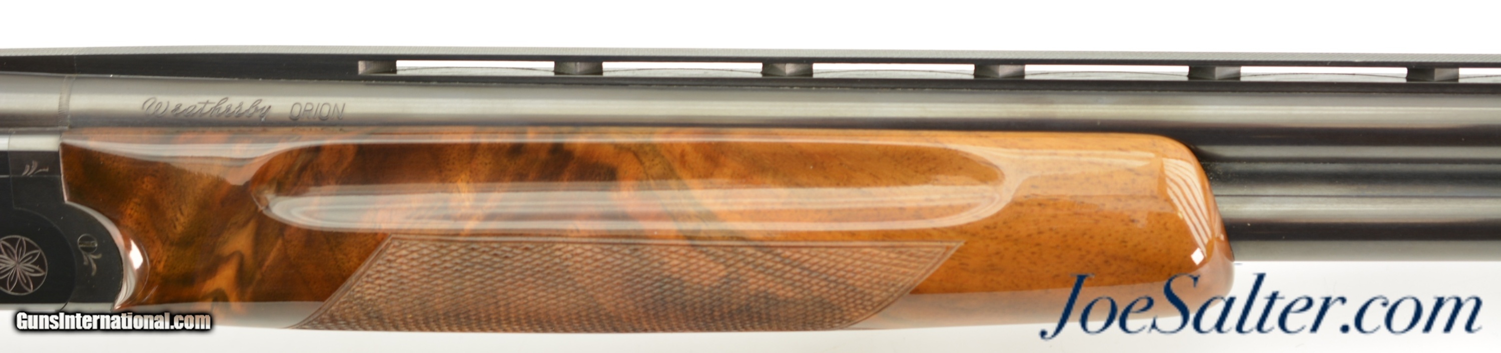 Description: Serial #G001098, 20 Gauge (3" Chambers), 26 inch vent rib barrels with bright, excellent bores choked modified and improved cylinder. This is the Weatherby Orion II over/under shotgun manufactured in Japan. The Grade 2 shotgun features light engraving on the receiver and beautifully figured Turkish walnut and rosewood pistol grip cap with white spacer and diamond shaped inlay, along with the Greener Croosbolt action. In excellent plus condition the barrels and frame retain virtually all, 97-99% of the original high polish blue. The checkered stock and forearm are likewise excellent retaining virtually all of the original high gloss varnish with several tiny surface level use marks and two small dings on the bottom of the buttstock. A beautiful Weatherby Orion II that handles great and looks fantastic. FFL SOLD |