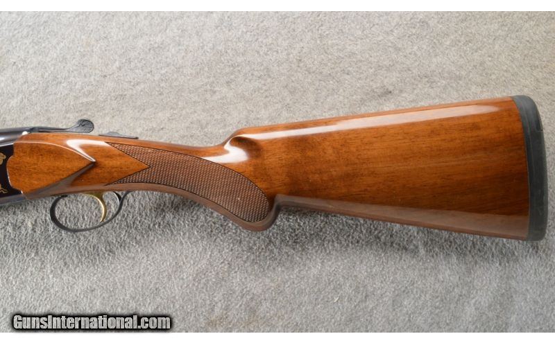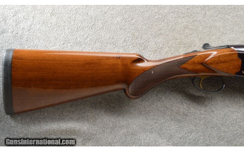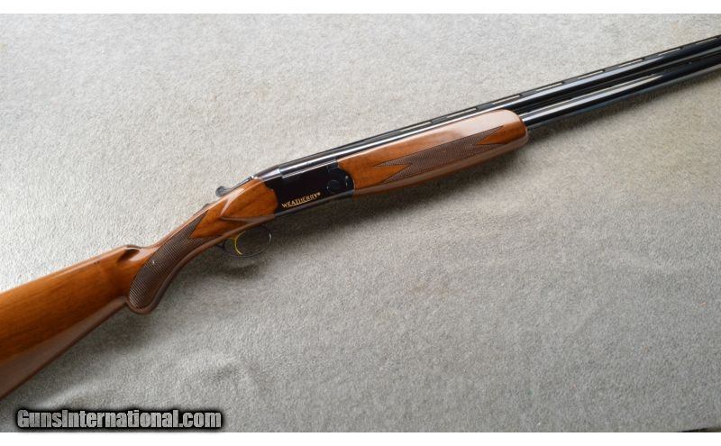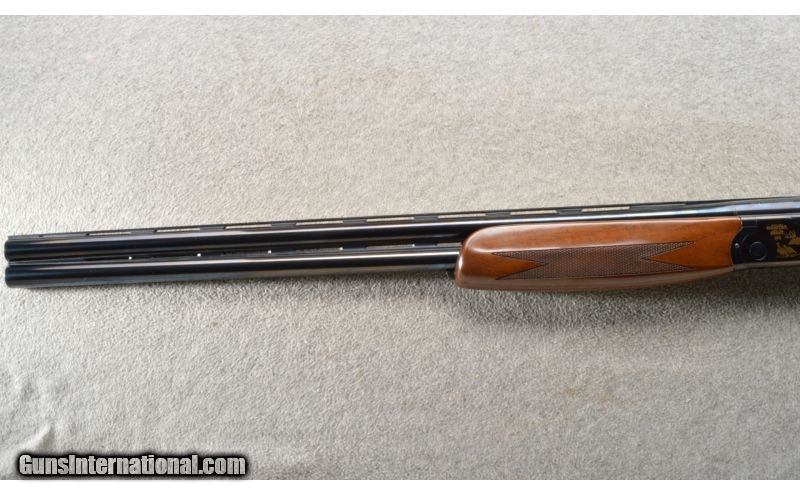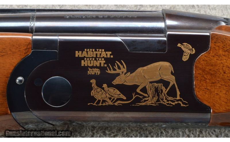 Description: This is a like new in box Weatherby Orion NWTF 12 gauge O/U shotgun. This like new shotgun has 28 inch gloss blue barrels with a vent rib and ejectors. The blue receiver has Save the Habitat. Save the Hunt. NWTF along with a Whitetail deer, 2 Turkeys and a Quail in gold. The walnut is very nice with a checkered round knob. This sharp looking shotgun may have been fired outside of the factory but it is hard to tell. SOLD Caliber Info: 12 Gauge. Chambers: 2 3/4 and 3 inch Over/Under with ejectors. Metal Condition: Like new. Wood Condition: Like new. Bore Condition: Like new. Barrels: 28 in bright gloss blue with a vent rib. Triggers: Single gold color. Stock: Nice walnut with a checkered round knob and gloss finish. Stock Dimensions: 14 1/2 inch LOP. Fore End: Matching checkered walnut. Butt Pad: Weatherby black rubber butt pad with a heel cap. Weight: 7 Lbs 3 Oz. Sights: Single brass front bead on the vent rib. Chokes: Screw in, comes with a FULL, MOD and IC. Extras: Comes in the factory box with the manual and extra choke. Item Location: Owatonna, MN |