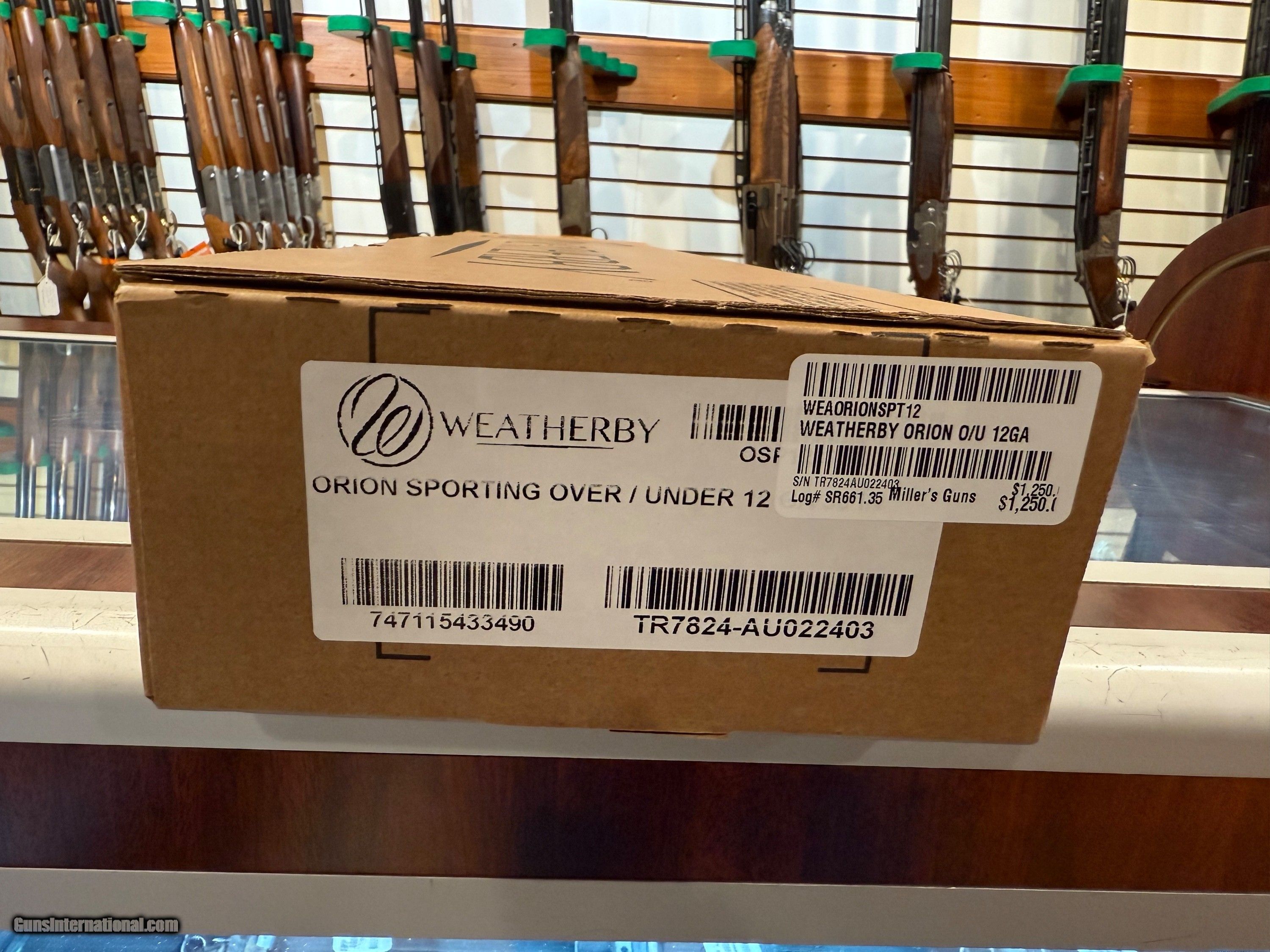 Description: Weatherby Orion Sporting 12ga 30" barrels 3" chamber 14.625" LOP 47.75" OAL 7.5 lbs SK, IC, M, IM, F chokes included Shotgun Gauge: 12 Gauge Manufacturer: Weatherby Model: Orion Sporting Serial Number: TR7824AU022403 Barrel Length: 30 Condition: NEW Price: $1,250.00 Contact Seller |