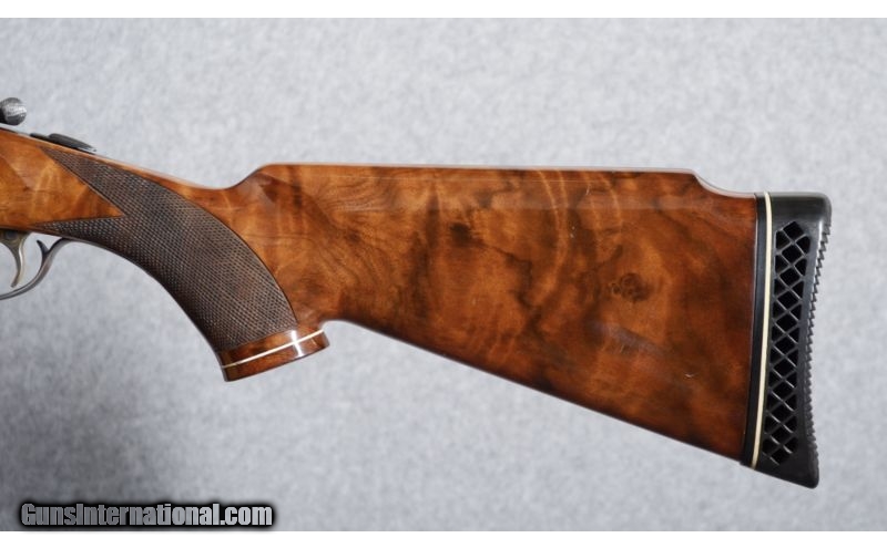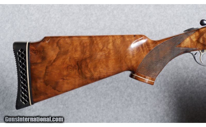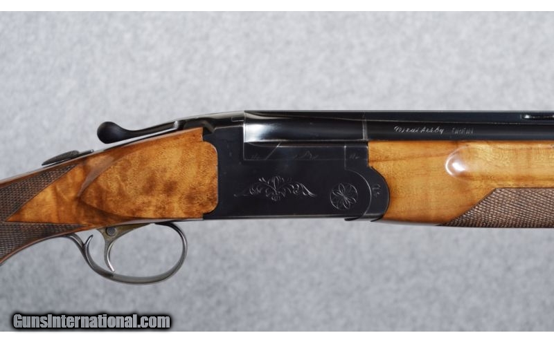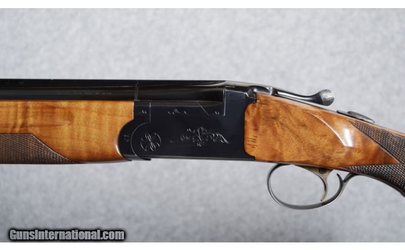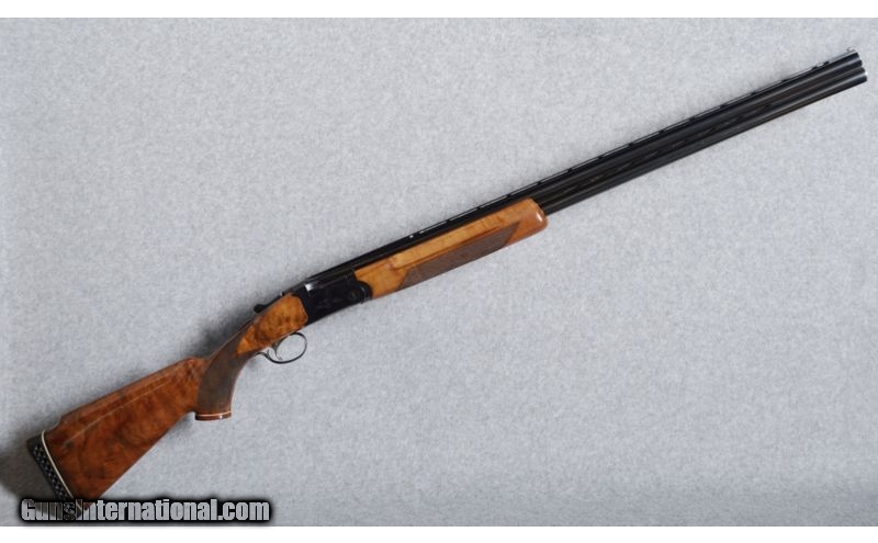 Description: SOLD Caliber Info: 12 Gauge Chambers: 2 3/4 Metal Condition: Very good, has some light marks. Wood Condition: Very good, has some scratches and two short cracks, one on each side at the top of the cheeks (next to the receiver) of the butt-stock. Bore Condition: Very good. Barrels: 32 Triggers: Single selective. Stock: Extra fancy walnut with raised comb, palm swell on both sides of the grip. Stock Dimensions: 14 1/4" length of pull and a 1/4" cast off for a right handed shooter. Butt Pad: Weatherby recoil pad. Weight: 8 Lbs. Sights: Wide trap rib with a tiny silver intermediate bead and a white front bead. Chokes: Two choke tubes, Full & Imp. Mod. Item Location: Rapid City, SD |
