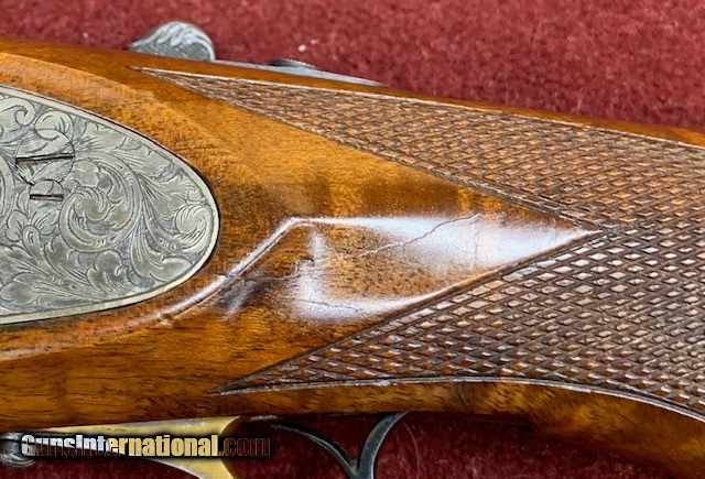 Description: Weatherby Regency 12g 30" Trap Fair to good SN- R4080 12g 30" F/IM chokes 2 3/4" chambers Comb 1 3/8" Heel 2 1/4" LOP 14 1/2" Cast 1/8" off Ejectors Manual safety Single selective trigger Cool gun. Nice clean action. Some wear marks. Well repaired crack at wrist and seen in photos. Wood is sound per Orvis Gunsmith. Please call or email for additional information and photos. SOLD |